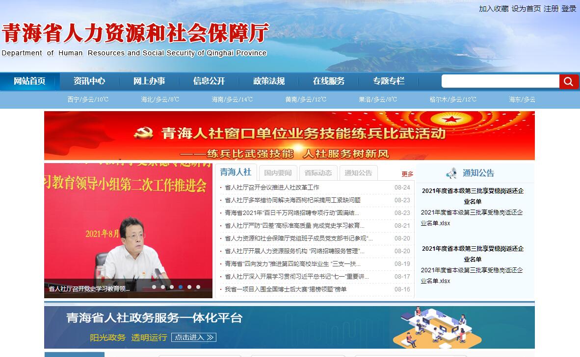 青海省人力资源和社会保障厅官方门户网站。