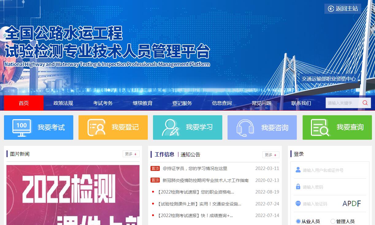 | 网站名称: | 全国公路水运工程试验检测专业技术人员管理平台 | ||