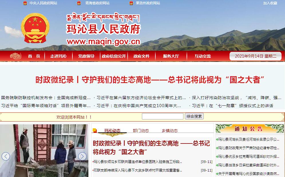 玛沁县人民政府官方门户网站。
