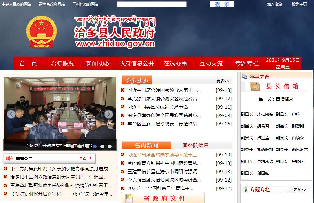 治多县人民政府官方门户网站。