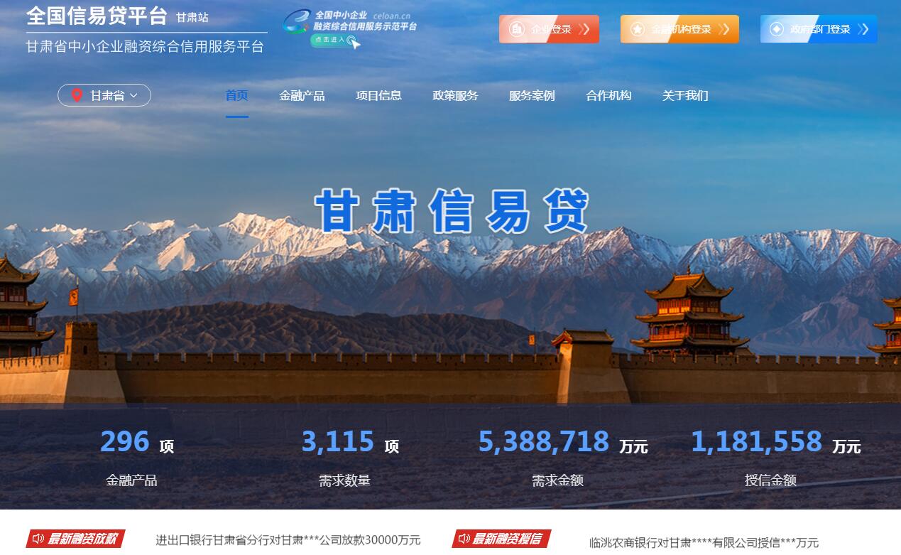 甘肃省中小企业融资综合信用服务平台官方网站。