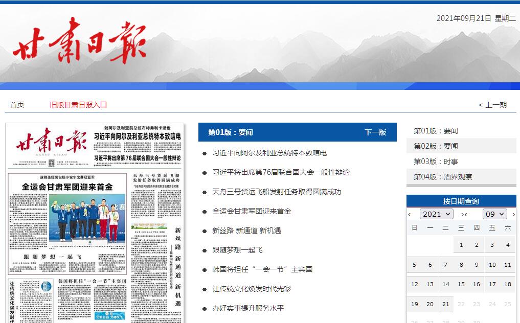| 网站简介: 甘肃日报电子版,甘肃日报多媒体数字报,《甘肃日报》创始于1949年9月1日。 |