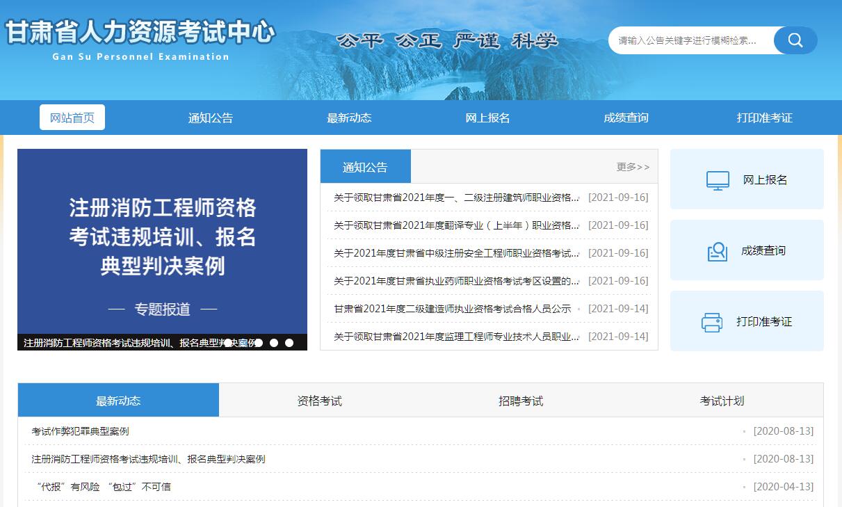 甘肃省人力资源考试中心官方网站。
