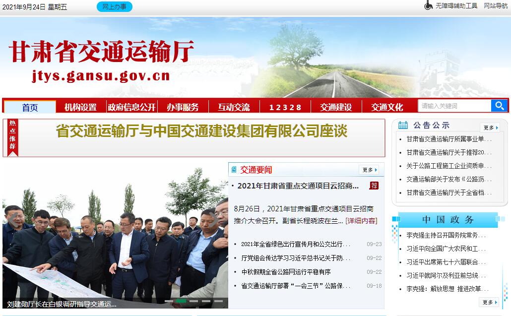 甘肃省交通运输厅官方门户网站。