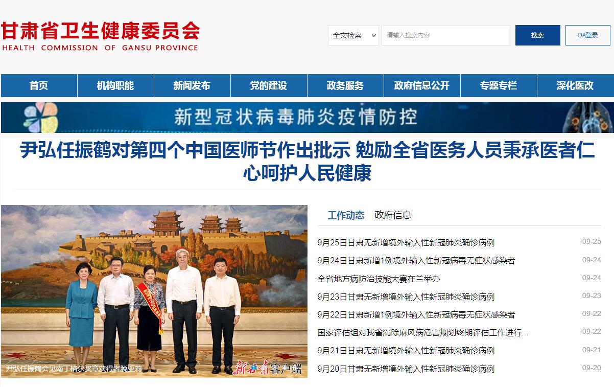 甘肃省卫生健康委员会官方门户网站。