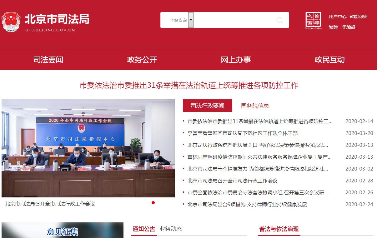 | 网站简介: 北京市司法局是负责本市司法行政工作的市政府组成部门,其主要职责是:1、贯彻落实国家关于司法行政方面的法律、法规、规章和政策;起草本市相关地方性法规草案、政府规章草案;制定司法行政工作发展规划,并组织实施。2、制定本市法制宣传教育工作规划,并组织实施;指导全市法制宣传教育工作。3、指导、监督本市律师工作、公证工作,并承担相应责任;研究律师、公证、法律援助工作的改革与发展,并提出实施办法;监督管理法律援助工作。4、监督管理在京设立的国(境)外律师事务所代表机构。5、指导、监督本市人民调解、基层法律服务、社区矫正和帮教安置等工作。6、组织本市国家司法考试的考务工作。7、负责本市司法鉴定机构和司法鉴定人登记管理工作。8、负责本市仲裁机构登记管理工作。9、负责本市司法行政系统外事工作和对外宣传、交流工作。10、负责本市司法行政队伍建设、思想政治工作;负责司法行政系统的警务管理工作,指导警务督察和业务培训工作。11、承办市政府交办的其他事项。 |
