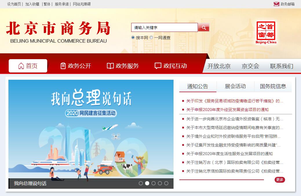 北京市商务局主要职责:1.起草本市相关地方性法规草案、政府规章草案,研究内外贸易、外商投资、对外经济合作和口岸工作的发展战略,提出中长期发展规划及年度计划并组织实施。2.负责推进本市流通产业结构调整,指导流通企业改革,促进商贸服务业和社区商业发展,提出促进商贸中小企业发展的政策建议,推动流通标准化和连锁经营、商业特许经营、物流配送、电子商务等现代流通方式的发展。3.促进本市城乡市场发展,会同有关部门组织编制本市商品流通和生活性服务业(不含住宿业)重点设施的布局规划并组织实施。协调推进市级商业中心、特色商业街区、大型批发零售商业设施等流通基础设施和重大项目建设。推进商业体系和农村流通现代化体系建设。牵头负责生活性服务业品质提升工作及相关行业发展促进工作。4.会同有关部门负责本市消费促进工作,研究制定促消费政策措施并组织实施,指导市有关部门、各区开展促消费工作。监测消费市场和批发业运行情况。5.承担牵头协调本市整顿和规范流通秩序工作的责任。提出提升商业服务质量和规范流通秩序的政策建议。参与推动商务领域信用建设,指导商业信用销售,按照有关规定对特殊流通行业进行监督管理。6.承担组织实施本市重要消费品市场调控和有关重要生产资料流通管理的责任。负责建立健全生活必需品市场供应应急管理机制,监测分析市场运行、商品供求状况,调查分析商品价格信息,进行预测预警和信息引导,按分工负责重要消费品储备管理和市场调控工作。按照有关规定对成品油流通进行监督管理。组织落实中央及本市重大会议活动的商品供应和相关服务保障工作。7.统筹推进本市商务服务业发展,会同有关部门拟订商务服务业发展规划、政策并组织实施。会同有关部门组织编制本市物流配送重点设施布局规划,拟订相关政策措施并组织实施,协调物流园区的规划和建设。负责推进会展业发展,会同有关部门拟订会展业发展规划、政策、标准并组织实施。8.负责本市货物进出口相关管理工作,拟订促进外贸发展规划,提出促进外贸稳增长调结构的政策措施并组织实施。监测分析外贸运行情况。贯彻落实国家相关支持政策措施。负责进出口企业经营资格备案、进出口许可证签发等行政管理工作。监督和协调本市机电产品的国际招标投标活动。负责海关特殊监管区域、保税监管场所的相关行业指导工作。指导开发区外贸、外商投资和对外经济合作工作。9.负责本市技术贸易工作,执行国家对外技术贸易、进出口管制以及鼓励技术和成套设备进出口的贸易政策,推进进出口贸易标准化工作,依法监督技术引进、设备进口、国家限制出口技术的工作,依法颁发两用物项和技术进出口许可证。10.牵头拟订本市服务贸易发展规划并开展相关工作,会同有关部门制定促进服务贸易和服务外包发展的政策措施并组织实施,推动服务贸易公共服务平台建设。会同有关方面拟订促进对外文化贸易发展的规划、政策并组织实施,负责对外文化贸易统计分析等工作。11.协助承担本市与对外贸易有关的知识产权保护工作。负责涉及本市的世界贸易组织有关事务的综合协调工作。协助承担本市进出口公平贸易、产业损害调查及产业安全应对工作。12.负责本市外商投资相关管理及投资促进工作,拟订外商投资及投资促进政策并组织实施,依法负责外商投资企业设立、变更以及外国投资者并购境内企业设立外商投资企业的审批工作,依法监督检查外商投资企业执行有关法律法规规章、合同章程的情况并协调解决有关问题,指导本市外商投资企业备案工作。加强与港澳台地区的经济合作交流。13.负责本市对外经济合作工作,研究提出对外经济合作发展的政策措施,负责与国外多双边经济、技术援助的有关工作,依法管理和监督对外投资、对外承包工程、对外劳务合作等,负责牵头外派劳务人员的权益保护工作,按权限依法核准对外劳务合作经营资格。14.负责依法指导、协调商务领域安全生产管理工作,指导督促商务领域重点单位贯彻落实有关安全法律法规,配合有关部门对违反有关安全法律法规的行为进行查处,并承担相应的管理责任。依法对本市成品油流通等方面的安全工作承担相应的管理责任。15.起草本市关于口岸工作方面的地方性法规草案、政府规章草案。研究提出口岸发展规划及政策措施并组织实施。负责口岸综合协调管理和通关便利化工作。负责拟订本市电子口岸建设规划并组织实施。组织实施北京国际贸易“单一窗口”工作。负责京津冀口岸协同发展相关工作。组织协调首都机场地区精神文明建设和社会治安综合治理、食品药品安全等工作。16.负责本市商业服务业人才工作的宏观管理,引导、推动并组织协调商业服务业人才队伍建设及老字号传承人才培养工作。17.管理市粮食和储备局。18.完成市委、市政府交办的其他事项。