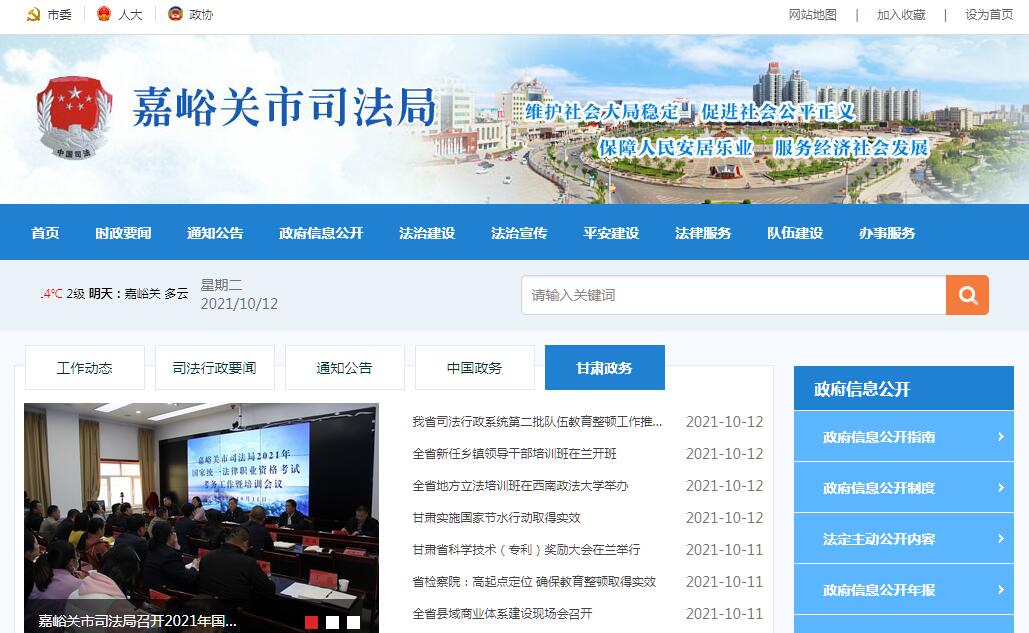 嘉峪关市司法局官方网站。