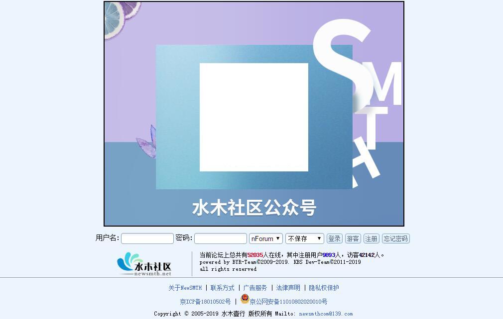 | 网站简介: 水木社区网站(NewSMTH.Net)由北京水木壹行科技有限公司设立,于2005年11月开始运行,ICP备案号为京ICP备18010502号-1。网站开设论坛BBS、网志Blog,校友录Alumni等服务,吸引青年网民,通过这些用户提供的知识和信息,带动更多的网民进入。水木社区提供多样化的服务,以及主要涵盖学术科学、电脑技术、文化人文、体育健身等领域的知识和信息,获得用户的支持和认可,成为一流的网络社区。源于清华的高知社群,象牙塔通向社会的桥梁。 |