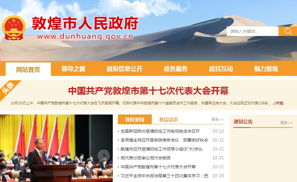 敦煌市人民政府官方门户网站。