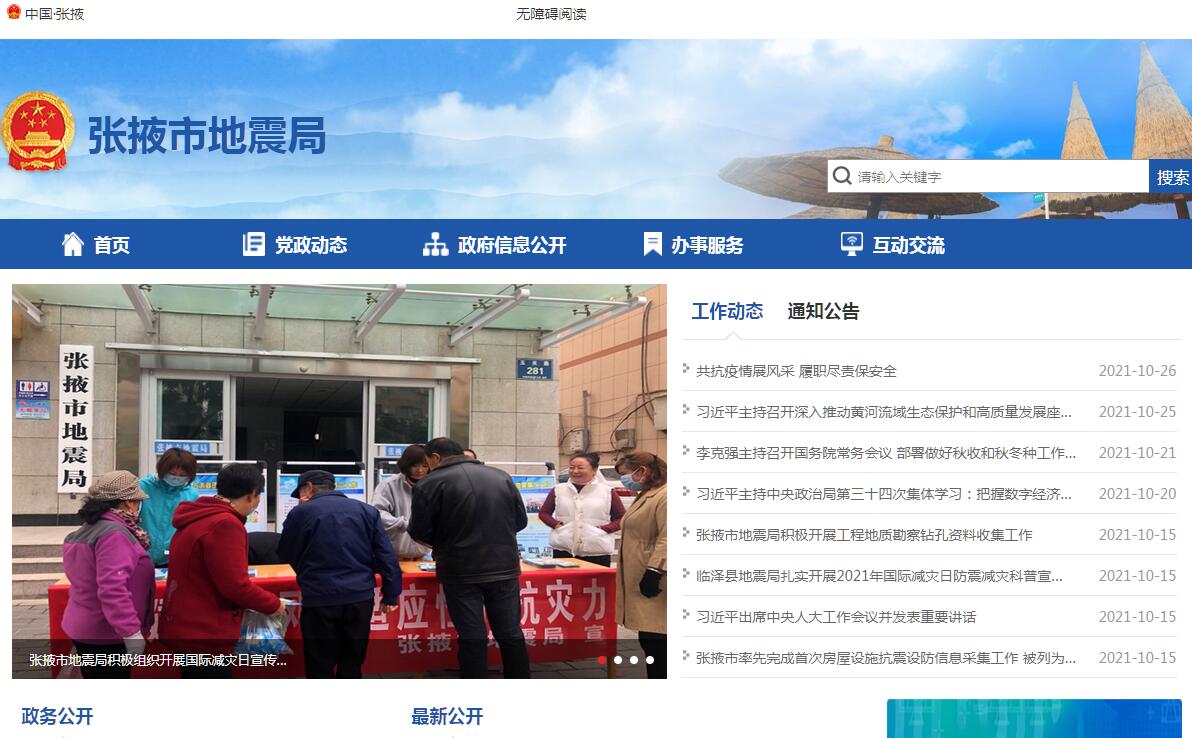 张掖市地震局官方网站。