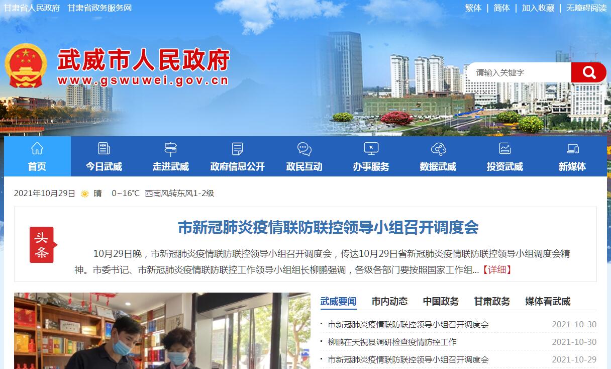 武威市人民政府官方门户网站。