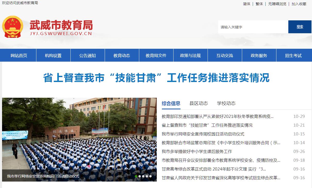 武威市教育局官方网站。