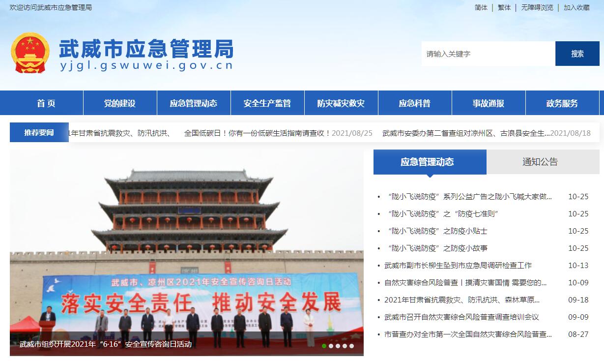 武威市应急管理局官方网站。