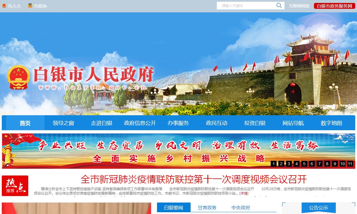 白银市人民政府官方门户网站。