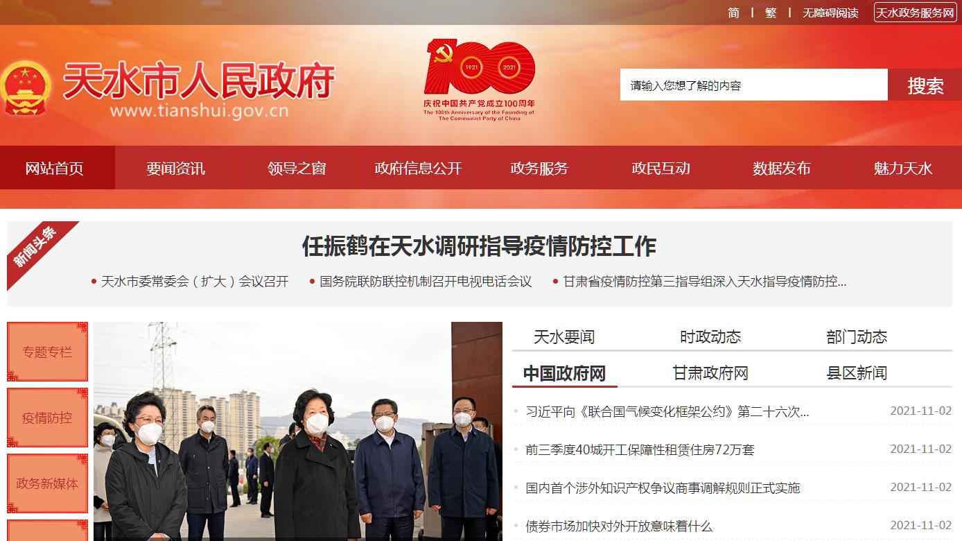 天水市人民政府官方门户网站。