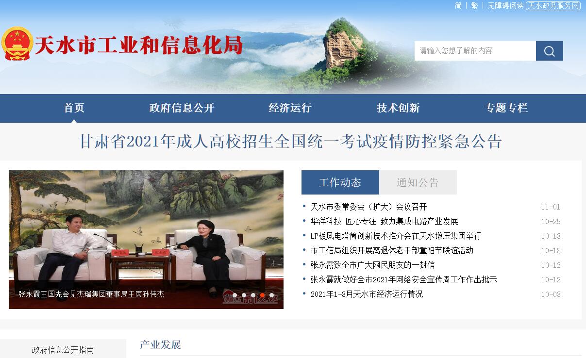 天水市工业和信息化局官方网站。