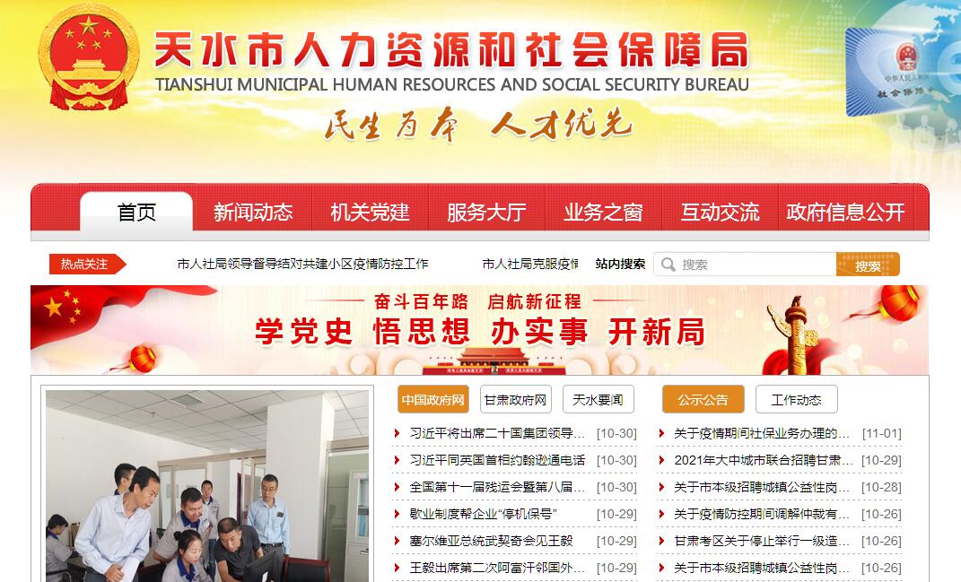 天水市人力资源和社会保障局官方网站。