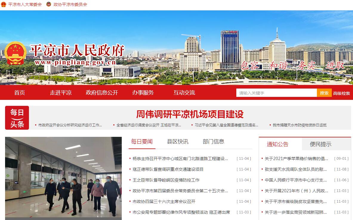 平凉市人民政府官方门户网站。