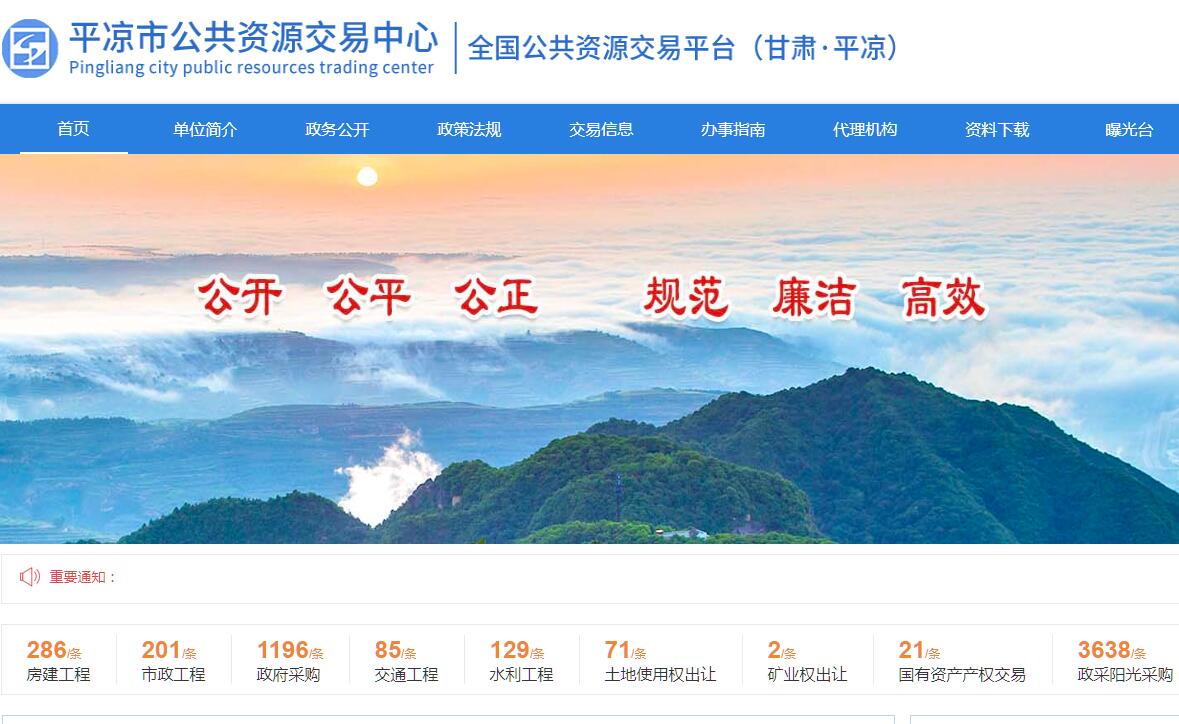 平凉市公共资源交易中心官方网站。