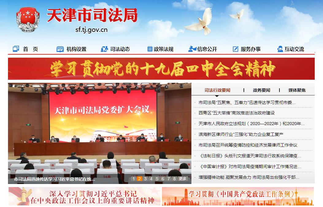 天津市司法局恢复重建于1979年,是市政府组成部门,在市委市政府和司法部的领导下,主管全市司法局政工作。其主要职责是:(一)贯彻执行国家有关司法行政工作的法律、法规和方针、政策,研究起草有关地方性法规、规章草案,拟订司法行政工作发展规划并组织实施和监督检查。(二)指导、监督刑罚执行、改造罪犯和监狱管理工作。(三)指导、监督司法行政系统强制隔离戒毒、戒毒康复和教育矫治工作。(四)拟订普及法律常识和法制宣传教育、法治天津建设工作规划,并组织实施。(五)指导、监督律师工作和公证工作,并承担相应责任。(六)监督、管理法律援助工作。(七)指导、监督基层司法所建设、人民调解和基层法律服务工作。(八)指导、管理社区矫正工作,指导刑满释放人员安置帮教工作。(九)组织国家司法考试的考务工作。(十)负责司法鉴定人和司法鉴定机构的管理工作。(十一)负责司法行政系统对外交流与合作,承办涉港澳台司法行政事务。(十二)管理、指导司法行政系统计划、财务和警务装备工作,负责机关及所属单位国有资产的管理和监督工作。(十三)负责司法行政系统的队伍建设、思想政治工作和干部培训工作。负责司法行政系统的警务管理和警务督察工作,协助区县管理区县司法局领导干部。(十四)承办市委、市政府交办的其他事项。