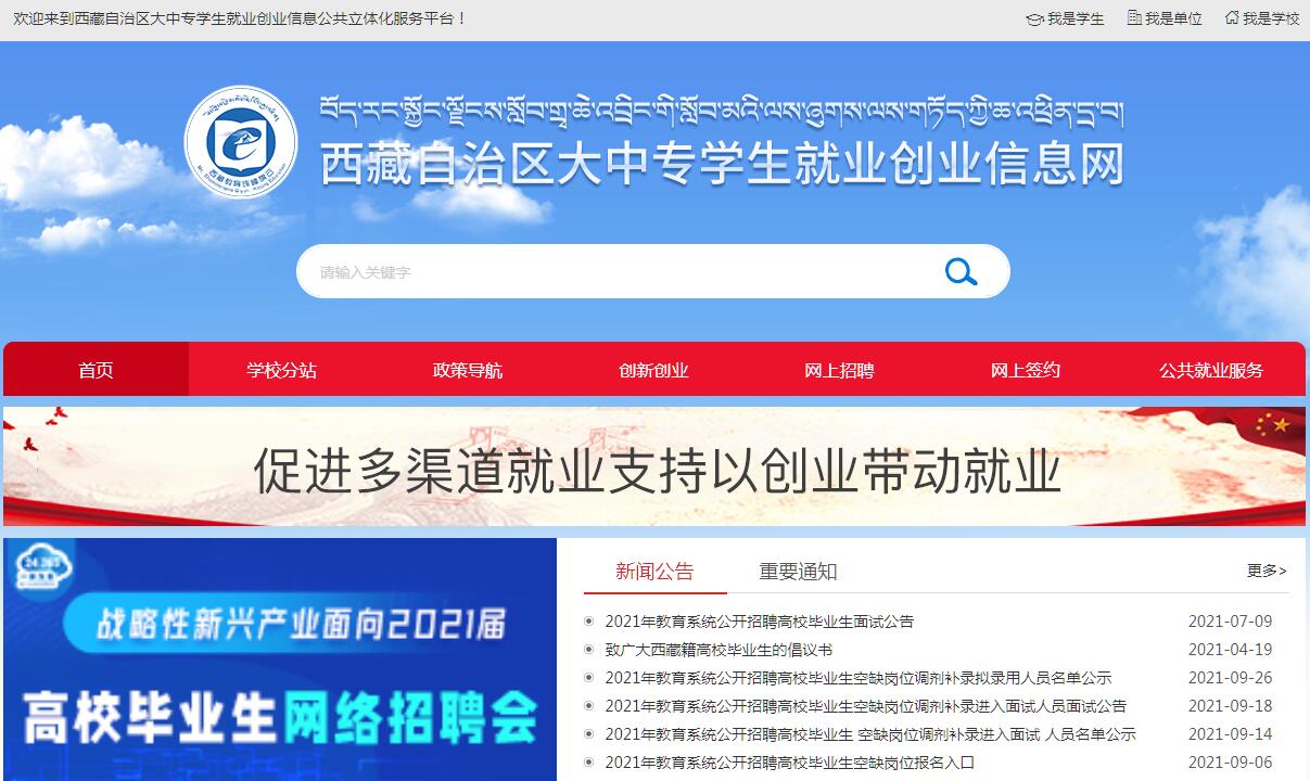 西藏大中专学生就业创业立体化服务平台官方网站。