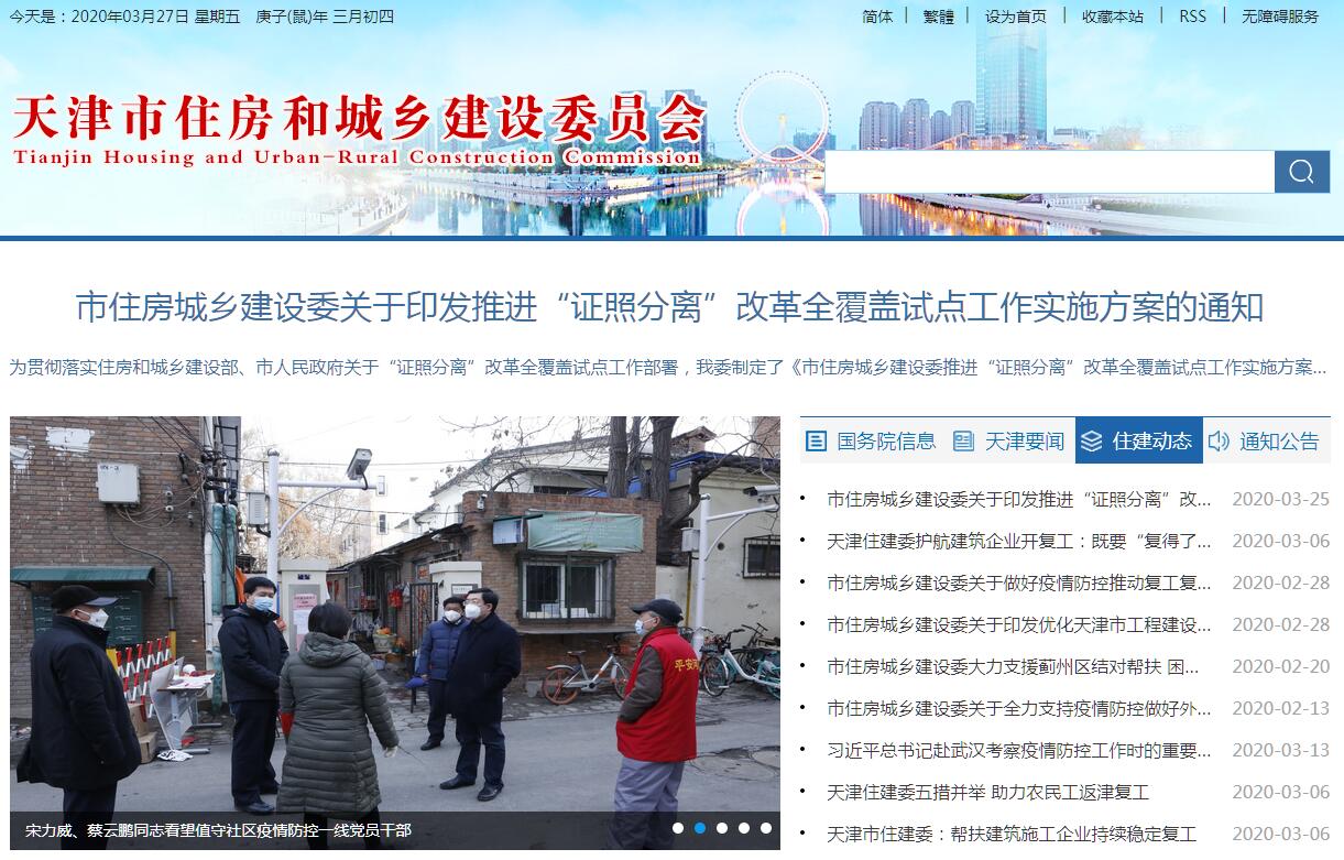 天津市住房和城乡建设委员会主要职责如下:(一)贯彻执行国家有关住房和城乡建设的法律、法规、规章和政策文件,研究起草有关地方性法规、政府规章草案,拟订有关政策和规范、标准,并组织实施。(二)负责编制住房和城乡建设相关行业发展规划。负责编制相关市政基础设施专项规划。会同有关部门拟订市政基础设施(不含与土地资源整理相关的市政配套基础设施)近期建设规划和年度建设计划、轨道交通和机场年度建设计划,并组织实施。会同有关部门管理城市建设资金。负责住房和城乡建设领域信用体系建设。负责住房和城乡建设综合统计工作。(三)承担城镇低收入住房困难家庭住房保障责任。拟订住房保障相关政策,并组织实施。编制住房保障中长期发展规划,制定年度计划,并组织实施。(四)承担推进住房制度改革责任。拟订住房制度改革政策措施,并组织实施。负责住房货币分配、公有住房出售、公房租金改革和房改资金管理。承担市住房公积金管理委员会日常工作。(五)承担规范房地产市场秩序、监督管理房地产市场的责任。负责房地产开发行业管理。负责编制房地产业发展规划和产业政策。负责制定房地产(含保障性住房)建设计划。拟订房地产项目基础设施配套建设标准并监督执行,指导推动住宅项目非经营性公建配套建设。负责房地产转让、房屋租赁等交易行为的监督管理。负责房地产开发企业、中介服务机构管理。负责房地产市场监测分析。(六)负责直管公产房屋(党政机关办公用房除外)资产的监督管理。负责历史风貌建筑保护利用管理。拟订国有土地上房屋征收政策制度并监督执行。督促、协调落实私房政策。负责涉外房地产和代管房地产的管理。(七)负责物业管理活动的监督管理。负责房屋共用部位、共用设施设备维修资金归集和使用管理。(八)负责建筑行业和建筑市场管理。负责房屋建筑、市政基础设施和轨道交通、机场项目建设管理。负责制定工程造价、招投标、合同、施工许可等相关政策,并监督管理。负责建筑施工企业和监理、造价等中介服务机构资质及相关执业人员资格的管理。(九)负责建设工程勘察设计行业管理。组织制定工程建设标准和技术规范。负责施工图审查和施工图审查机构的监督管理。负责建设工程消防设计审查验收相关工作。负责房屋建筑和市政基础设施工程抗震设防的监督管理。(十)拟订村庄和小城镇建设政策并指导实施。指导农村住房建设和安全及危房改造。指导村镇建设试点示范工作。(十一)负责建设工程(法律、法规有特殊规定的除外)施工质量、安全生产和文明施工的监督管理。监督指导已建成交付使用房屋的安全管理(村民自建房屋除外)。组织或参与工程质量、安全事故调查处理。负责重大项目建设综合协调。(十二)负责住房和城乡建设领域科技、教育和信息化建设工作。负责推进科技进步和成果转化工作。负责推广建筑节能、绿色建筑和装配式建筑发展工作,会同有关部门拟订相关政策并组织实施。指导推进住房和城乡建设行业职业教育工作。(十三)组织住房和城乡建设领域招商引资工作,配合有关部门推动市政基础设施投融资工作。(十四)负责本系统人才队伍建设。(十五)承办市委、市政府交办的其他事项。