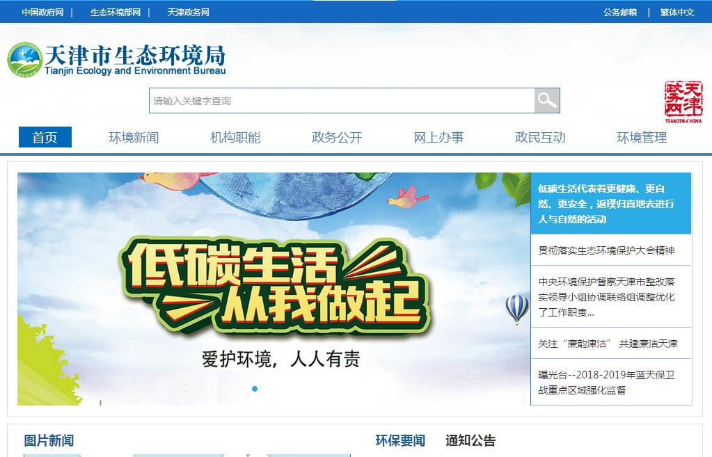 天津市生态环境局主要职责如下:(一)负责建立健全生态环境保护监督管理制度。贯彻落实生态环境保护方面法律法规和国家标准,会同有关部门拟订本市生态环境保护政策、规划并组织实施,研究起草有关地方性法规、政府规章草案和政策文件。会同有关部门编制并监督实施重点区域、流域、海域、饮用水水源地生态环境规划和水功能区划,组织拟订本市生态环境保护标准,制定生态环境技术规范。(二)负责重大生态环境问题的统筹协调和监督管理。牵头协调重大环境污染事故和生态破坏事件的调查处理,指导协调区政府对重大突发生态环境事件的应急、预警工作,牵头指导实施生态环境损害赔偿制度,协调解决本市有关跨区域环境污染纠纷,统筹协调重点区域、流域、海域生态环境保护工作。(三)负责监督管理本市减排目标落实。组织制定陆地和海洋各类污染物排放总量控制、排污许可证制度并监督实施,确定大气、水、海洋等纳污能力,提出实施总量控制的污染物名称和控制指标,监督检查各区污染物减排任务完成情况,实施生态环境保护目标责任制。(四)负责提出生态环境保护领域固定资产投资规模和方向、市级财政性资金安排的意见,配合有关部门做好组织实施和监督工作。参与指导推动循环经济和生态环保产业发展。(五)负责环境污染防治监督管理。制定本市大气、水、海洋、土壤、噪声、光、恶臭、固体废物、化学品、机动车等污染防治管理制度并监督实施。会同有关部门监督管理饮用水水源地生态环境保护工作,组织指导城乡生态环境综合整治工作,监督指导农业面源污染治理工作。按照国家统一部署,做好区域大气污染联防联控工作。(六)指导协调和监督生态保护修复工作。组织编制生态保护规划,监督对生态环境有影响的自然资源开发利用活动,重要生态环境建设和生态破坏恢复工作。组织实施国家制定的各类自然保护地生态环境监管制度。监督野生动植物保护、湿地生态环境保护等工作。指导和监督农村生态环境保护。组织协调生物多样性保护工作,参与生态保护补偿工作。(七)负责核与辐射安全监督管理。贯彻落实国家有关政策、规划、标准,牵头负责涉核安全协调工作,参与核事故应急处置,负责辐射环境事故应急处理工作。按照职责分工监督管理放射源防护安全,监督管理核技术应用、电磁辐射、伴有放射性矿产资源开发利用中的污染防治。(八)负责生态环境准入监督管理。按规定审查和审批重大开发建设区域、规划、项目环境影响评价文件。组织落实国家颁布的生态环境准入清单。(九)负责生态环境监测工作。组织实施生态环境监测制度和规范。会同有关部门统一规划生态环境质量监测站点设置,组织实施生态环境质量监测、污染源监督性监测、温室气体减排监测、应急监测。组织对生态环境质量状况进行调查评价、预警监测,组织建设和管理我市生态环境监测网和生态环境信息网。建立和实行生态环境质量公告制度,统一发布生态环境综合性报告和重大生态环境信息。(十)负责应对气候变化工作。组织拟订本市应对气候变化及温室气体减排规划、计划和政策。(十一)组织开展生态环境保护督察。建立健全生态环境保护督察制度,组织协调生态环境保护督察工作,根据授权对各区各有关部门贯彻落实中央和市委市政府生态环境保护决策部署情况提出督察问责建议。(十二)统一负责生态环境监督执法。组织开展全市生态环境保护执法检查活动。查处重大生态环境违法问题。指导全市生态环境保护综合执法队伍建设和业务工作。(十三)组织指导和协调生态环境保护宣传教育工作。推动社会组织和公众参与生态环境保护。开展生态环境保护科技工作,组织生态环境保护重大科学研究和技术工程示范,推动生态环境保护技术管理体系建设。(十四)开展生态环境保护国际合作交流,组织协调有关生态环境保护国际条约在本市的履约工作,参与处理涉外生态环境保护事务。(十五)负责生态环境保护领域人才队伍建设。(十六)组织推动生态环境保护领域招商引资工作。(十七)完成市委、市政府交办的其他事项。