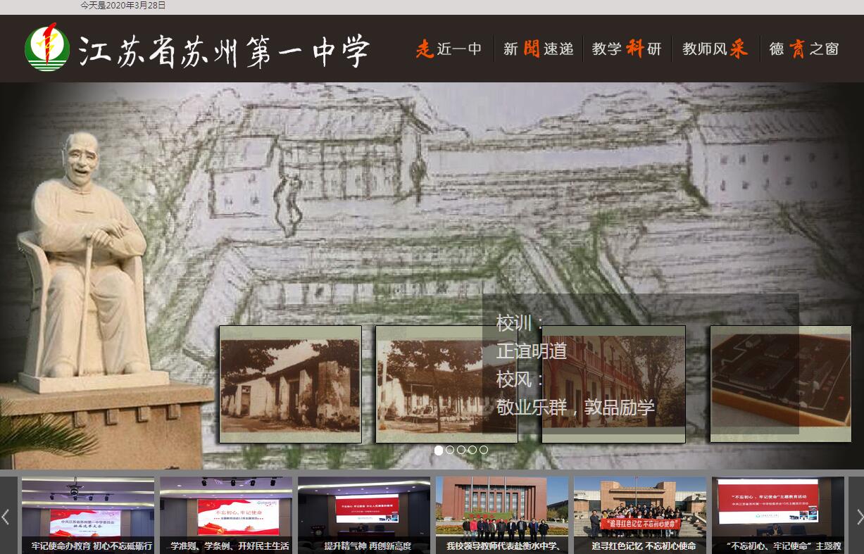 江苏省苏州第一中学始创于1907年,时名“苏州公立第一中学堂”(民间校名为“草桥中学”),是苏州第一所公办新式学堂。而追溯苏州一中正式创办前的渊源,则可从其历史沿革的轨迹中,追寻至创办于清嘉庆十年(1805年)的正谊书院。故苏州人称其为“双百书院,百年一中”。现为江苏省重点中学、国家级示范高中、江苏省四星级普通高中。学校以“正谊明道”为校训,坚持“为和谐发展而教育”的办学理念,秉承“自加压力,自主发展”的办学精神,实践“传承百年办学传统,深耕圣陶教育思想,促进学校转型创新,共建师生精神家园”的办学思路,以“基础扎实,素质全面,身心和谐,习惯良好的现代栋梁之材”为培养目标,全面实施素质教育,实现“为人生而教育”的办学境界和教育情怀。学校坚持学习实践叶圣陶教育思想,办学特色鲜明。以叶圣陶“教育就是培养良好的习惯”的德育思想、“教是为了达到不需要教”的教学思想、“教育工作者的全部工作就是为人师表”的教师发展思想为三大重点,深入学习、广泛实践,办学特色日益彰显,办学品牌影响广泛。现在苏州一中已经成为全国性叶圣陶教育思想的实践园地、研究基地和宣传阵地。名家掌校、名师执教、名人辈出是苏州一中百年办学史最为显著的特点。早期掌校政者有王同愈、蒋炳章、蔡俊镛、袁希洛、汪家玉等社会贤达,曾担任教职的有吕叔湘、匡亚明、张闻天等著名学者。千年紫藤下走出了叶圣陶、顾颉刚、王伯祥等一大批文化英杰和三十二位两院院士。学校现有江苏省特级教师8人,教授级高级教师5人,苏州市教育名家1人,苏州市教育领军人才2人,苏州市名教师5人,苏州市大市学科带头人16人,近30%的教师拥有硕士研究生学历等。在一中,成就了学生!注重学生兴趣培养和特长发展的教育终获丰收。在一中,成就了老师!注重学术水平提高和价值实现的教师薪火相传。