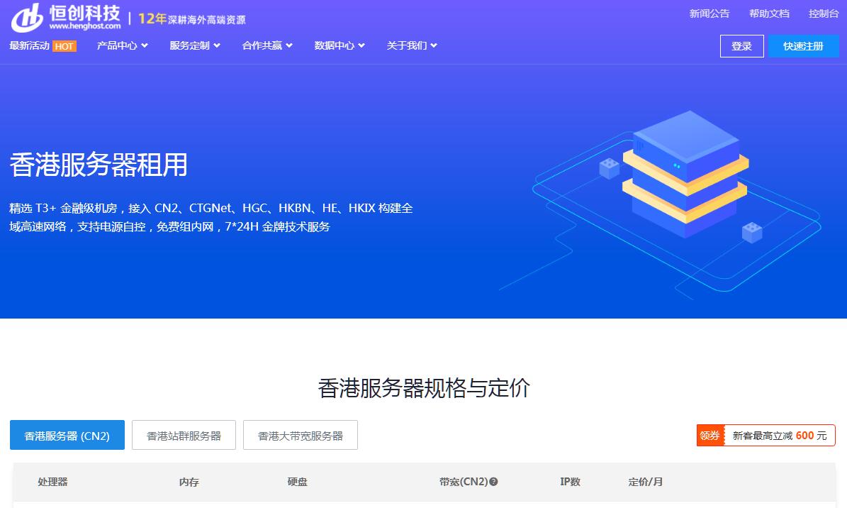| 网站简介: 恒创科技是国内知名的香港/海外数据中心基础服务商,基于优|质香港数据中心,提供香港CN2服务器、香港多IP站群服务器、香港服务器租用服务,数据中心全球BGP多线接入,且提供电信CN2线路直连,高速稳定。 |