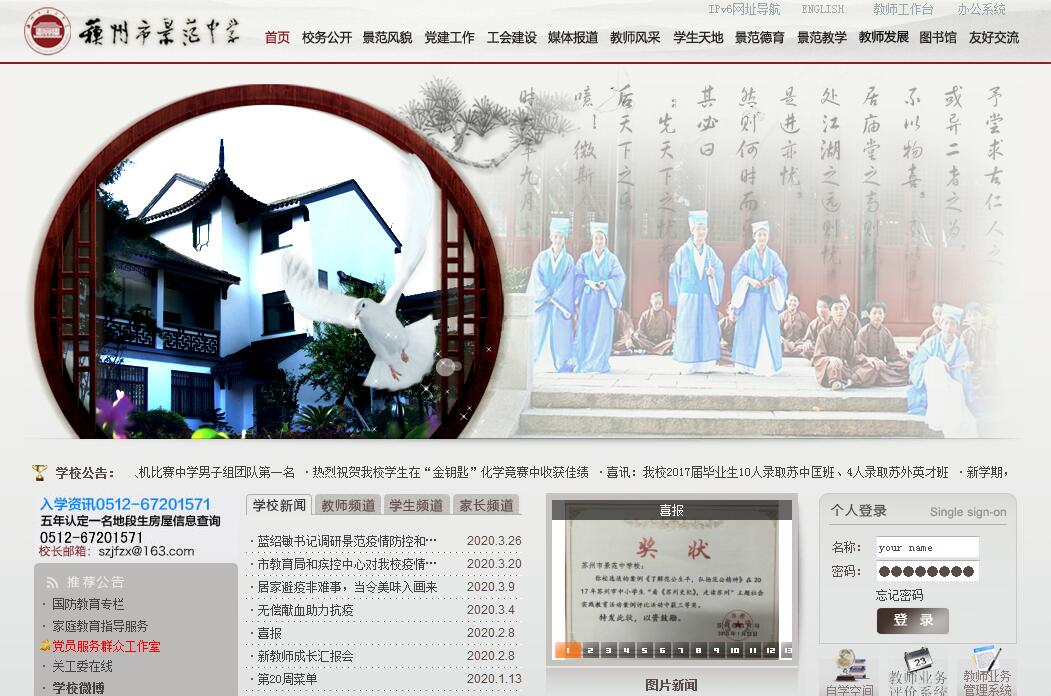 景范中学所在地为北宋名相范仲淹祖宅。1049年,范仲淹捐祖宅创办“义庄”、设置 “义学”,开启了中国历史上的义庄、义学历史。1346年,范氏后人创办“文正书院”,历时600多年,直至新学开启。1938年,唐言借“范义庄”创办新式学校“私立崇范中学”,开启了义庄土地的新学之风。1945年,范氏后裔范君博、范烟桥、范亚侃收回义庄办学权,创办“私立景范中学” 1956年,政府接管办学,校名先后为五爱中学、第八初级中学、第二十二中学,1989年,范仲淹诞辰一千周年之际,学校改名为苏州市景范中学,表达景仰范仲淹之意。2011年9月,景范金阊新城校区落成开学,2015年成立景范教育集团。千年义庄文化熏陶和义学文脉滋养,为景范中学积淀了深厚的文化底蕴,学校因此拥有了办学的浑厚底气。多年来,景范人秉承“先忧后乐”校训,以“继承先忧后乐精神,培育既文且正学子”为办学理念,在校园环境建设、师资培养、教育教学改革、内部管理服务、教育质量提升等方面进行了积极探索与实践,取得了引人注目的成绩。学校先后荣获 “江苏省模范学校”、“江苏省教育现代化示范初中”、“江苏省和谐学校”、 “江苏省德育先进学校”、“江苏省课程改革先进集体”、“江苏省最具影响力初中”等100多项荣誉。同时,被命名为“全国班主任专业化试点学校”、“长三角名师名校长培训实践基地”、“江苏省廉政文化示范基地”、“华东师范大学语文教学研究中心”、“江苏省初中专业委员会语文学科基地”、“苏州市初中数学学科基地”、“苏州市初中生物学科基地”。《人民教育》、《中国教师报》、《江苏教育研究》、《长三角教育》、《初中教育研究》等国家、省级报刊杂志曾先后对景范办学进行多侧面的专题报道。从上世纪八十年代起,景范就致力于课堂教学改革。近年来,学校以“主动适应每个孩子的成长需要”为宗旨,遵循“因材施教”,不断研究轻负高效的教学策略,一直勇立全省教改潮头。2008年初步形成了以“集体备课、互动课堂、学法指导”为内核的课堂教学“质量三宝”。 2009年,学校尝试在起始年级实施数学、英语学科“分层走班教学”以更好地关注学生差异,发展每位学生优势潜能。2013年学校加入全国C20慕课联盟,成为全国首批“翻转课堂”实验学校,参与“翻转课堂”教学探索。2015年学校开启“书院式教学”实践研究,以分层、分类、个别化为课程组织形式,将分层走班教学提档升级。