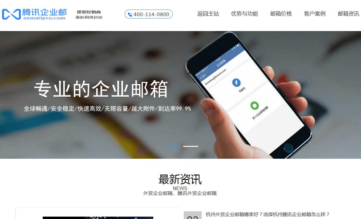 桑桥网络是腾讯企业邮箱官方授权的代理服务商(热线电话/QQ:4001140800 , 网址:www.sangqiao.com )。外贸企业邮箱、外贸邮箱、腾讯外贸企业邮箱、外贸企业邮箱开通、外贸企业邮箱购买、外贸企业邮箱(QQ外贸邮箱:foreign.exmail.pro )哪家好?就选企业邮箱经销商、腾讯企业邮箱代理(代理商、经销商、供应商、服务商、服务中心)——桑桥网络。如果你正在找腾讯企业邮箱供应商、外贸邮箱代理商,我可以告诉你,你来对地方了。我们公司-桑桥网络科技有限公司-自2013年起,就被授权为腾讯企业邮箱官方一级代理商、经销商、供应商。外贸邮箱代理商桑桥网络提供腾讯企业邮箱报价、申请、升级、扩容、正式版、收费版、销售、服务、代理、售后等工作。腾讯邮箱服务是腾讯公司的“七星级”产品,通过持续的创新和优异的产品质量赢得了高口碑,快速增长,在短期内迅速赶超成为国内第一的电子邮件服务提供商。腾讯企业邮箱是腾讯邮箱团队专为企业打造的企业办公用邮箱,秉承腾讯邮箱一贯的稳定,简洁和快速。同时还整合了多种企业应用,涵盖资源共享,消息发布,组织管理等方面。无论你的企业是上千人的大型集团公司,还是几百人的中型企业,甚至是几十人的创业团队,腾讯企业邮箱都将能帮助你的企业高效准确地开展每天的工作。腾讯企业邮箱代理商(QQ企业邮箱代理商、腾讯企业邮箱服务中心)杭州桑桥网络科技有限公司愿竭诚为你服务!