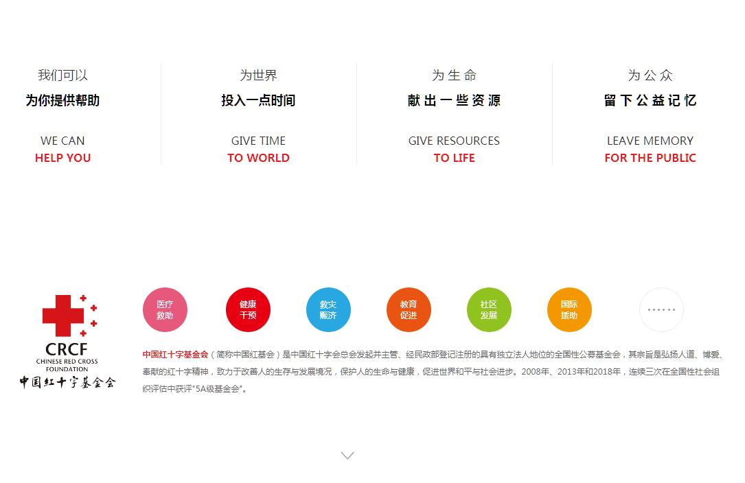 | 网站简介: 中国红十字基金会(简称中国红基会)是中国红十字会总会发起并主管、经民政部登记注册的具有独立法人地位的全国性公募基金会,其宗旨是弘扬人道、博爱、奉献的红十字精神,致力于改善人的生存与发展境况,保护人的生命与健康,促进世界和平与社会进步。2008年和2013年,连续两次在全国性社会组织评估中获评"5A级基金会"。 |