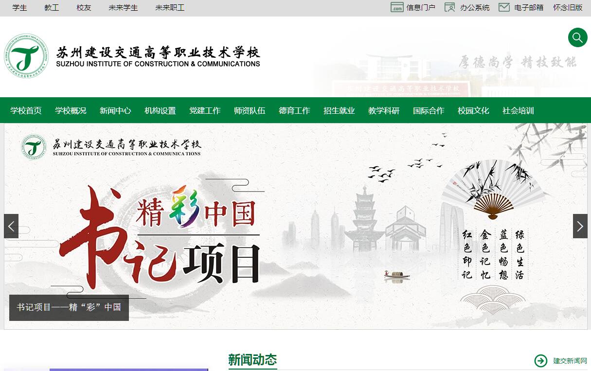 学校于2004年4月由苏州市委市政府根据国务院、省政府关于大力推进职业教育改革和发展的决定,按照《江苏省高等职业技术学校(五年制)设置办法》和《苏州市市区职业教育布局结构调整的总体方案》的要求,由五校合并组建而成,于2004年9月正式进驻苏州国际教育园。2005年2月,由江苏省教育厅批准建立高等职业技术学校,同时命名为江苏联合职业技术学院苏州建设交通分院,以举办五年一贯制高职专业为主,培养建筑、交通和商贸类专业的高素质劳动者和技术技能型人才。学校现有两个校区,占地483亩,建筑面积14万7千多平方米,建有建筑、交通、商贸三大类专业实训中心,实训基地建筑面积达3万多平方米,现有专业教学实验实训设备7600余万元。学校建筑、汽车实训基地均为省级高水平示范性实训基地建设项目和省级技能教学研究基地。学校设置了建筑工程系、工程管理系、环境艺术工程系、汽车工程系、轨道交通工程系和商贸管理系六个教学系和一个基础教学部,在校学生6044人(其中五年制高职学生5427人),现有专兼职教师389人(生师比15.5:1),其中专任教师286人,专任专业教师225人(占专任教师78.6%),副高及以上职称88人(占专任教师30.8%);具有硕士研究生以上学历或学位的教师179人(占专任教师62.6%),在读博士学位2人,在读硕士学位39人;“双师型”教师200人(占专任专业教师总数的88.9%)。同时,学校还聘任了一批具有扎实理论功底和丰富实践经验的行业、企业专家和技术骨干担任兼职专业教师。学校管理严格,重视学生综合素质教育,着重培养学生的动手能力。◇推行“理实一体化”教学模式和“项目课程”教学。◇被中国建设教育协会确定为德国慕尼黑汉斯·赛德尔基金会汽车技术试点学校。◇是丰田汽车T-TEP学校。◇是博世、现代汽车、巴斯夫、美国PPG涂料、斯必克、庞贝捷漆油等教学合作伙伴。◇连续多年是江苏省汽车运用与维修技能大赛赛点和全国汽车维修大赛江苏队集训点。学校承担以下主要社会职务:◇中国建设教育协会高等职业教育委员会副主任单位;◇江苏省职业教育汽车类专业教科研中心组组长单位(连续三年承办了江苏省职业学校汽车类专业课程改革师资培训);◇江苏联合职业技术学院汽车专业协作委员会理事长单位;◇江苏联合职业技术学院建筑专业协作委员会副理事长单位;◇江苏汽车职教集团副理事长单位;◇苏州市汽车专业协作组组长单位。学校是国家中等职业教育改革发展示范学校、江苏省高水平示范职业学校、江苏省课改实验学校,先后被授予“江苏省职业教育先进集体”、“江苏省平安校园”、“江苏省职业学校技能大赛先进学校”、“江苏省职业学校技能大赛特别贡献奖”、“江苏省职业学校和社会教育先进单位”、“苏州市高技能人才培养突出贡献奖”、“苏州市职业教育服务经济转型升级先进学校”等荣誉称号。学校立足内涵建设,以提高人才培养质量为目标,以创建“江苏省高水平现代化职业学校”为动力,以现代职业教育体系建设“中职与普通本科3+4分段培养”项目为重大机遇,紧扣苏州区域经济发展,逐步形成了独特的办学优势和品牌。