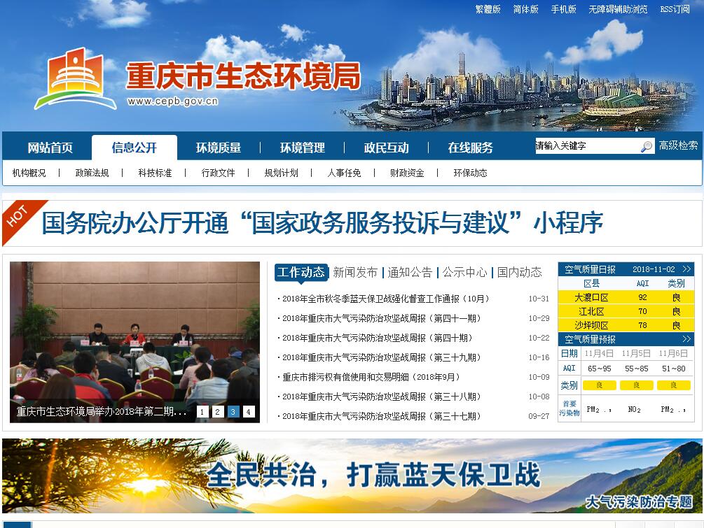 按照重庆市人民政府办公厅《关于印发重庆市环境保护局主要职责内设机构和人员编制规定的通知》(渝办发[2009]166号)文件规定,重庆市环境保护局为市政府组成部门,其主要职责是:(一)贯彻执行环境保护法律、法规、规章、标准和方针政策;起草环境保护地方性法规、规章和标准,根据职责和授权拟订有关法规的实施细则和规范性文件。(二)牵头开展环境保护政策研究;拟订并组织实施环境保护规划;组织拟订并监督实施重点区域、重点流域污染防治规划和环境保护专项规划;组织拟订环境功能区划和生态功能区划;参与拟订重庆市主体功能区划。(三)牵头协调重大环境污染事故和生态破坏事件调查处理;建立健全突发环境事件的应急预警机制,协调解决跨流域、跨地区的环境污染纠纷;负责环境保护行政稽查;组织开展环境保护执法检查。(四) 承担从源头上预防、控制环境污染和环境破坏的责任;受市政府委托对经济和技术政策、发展规划以及经济开发计划进行环境影响评价,对涉及环境保护的地方性法 规草案提出环境影响方面的意见,组织审查开发建设规划环境影响评价,监督管理对环境有影响的建设项目执行环境影响评价制度和“同时设计、同时施工、同时投 产使用”的“三同时”制度,按照规定审批建设项目环境影响评价文件。(五) 负责环境污染防治的监督管理。对大气、水体、噪声、固体废物、土壤和光、恶臭以及机动车等的污染防治和生态环境保护实施统一监督管理;组织实施化学品环境 管理;组织拟订主要污染物排放总量控制实施办法,督查、督办、核查各区县(自治县)污染物减排任务完成情况;依法开展强制性清洁生产审核工作,组织开展排 污权交易(试点)工作,组织实施排污申报、排污许可、排污收费和限期治理制度;组织指导城镇和农村的环境综合整治工作。(六) 组织开展生态环境质量调查,进行生态环境质量分析和评估,监督对生态环境有影响的自然资源开发利用活动、生态环境建设和生态破坏恢复工作;指导、协调、监 督各类自然保护区、风景名胜区、森林公园的环境保护工作,负责向市政府提出市级以上自然保护区设立、变更、撤销的审查意见,组织协调生物多样性保护,协调 和监督野生动植物保护、湿地环境保护工作;监督生物技术环境安全,牵头生物物种工作;指导协调农村生态环境保护工作。(七)负责核安全和辐射安全的监督管理。监督管理放射源安全、电磁辐射、核技术应用、伴有放射性矿产资源开发利用中的污染防治工作;组织开展核与辐射环境监测工作;参与核事故应急处理,负责辐射环境事故应急处理工作。(八) 负责环境监测网络、环境统计和环境信息系统的建设和管理;组织开展环境质量监测、污染源监督性监测和突发性环境污染应急监测,组织对环境质量状况进行调查 评估和预测预警;建立环境质量发布制度,组织编报环境质量报告书;统一发布环境状况公报、环境综合性报告和重大环境信息。(九)提出环境保护领域固定资产投资规模和方向、财政性资金安排的意见,并会同有关部门做好组织实施和监督工作;组织开展环境科学研究和新工艺、新技术工程示范;参与指导推动发展循环经济和环保产业有关工作;参与应对气候变化工作。(十)组织拟订和实施环境保护督查制度,组织实施环境保护目标责任制,监督检查环境保护目标任务完成情况,负责组织实施城市环境综合整治定量考核制度;组织开展环境保护模范城市创建,指导生态示范区与生态农业建设。(十一)组织开展生态文明建设和环境友好社会建设宣传教育工作;组织、指导和协调环境保护宣传教育工作;推动社会公众和社会组织参与环境保护。(十二)制订并组织实施环境保护国际合作交流计划;组织协调有关环境保护国际条约的履约工作。(十三)承办市政府交办的其他事项。