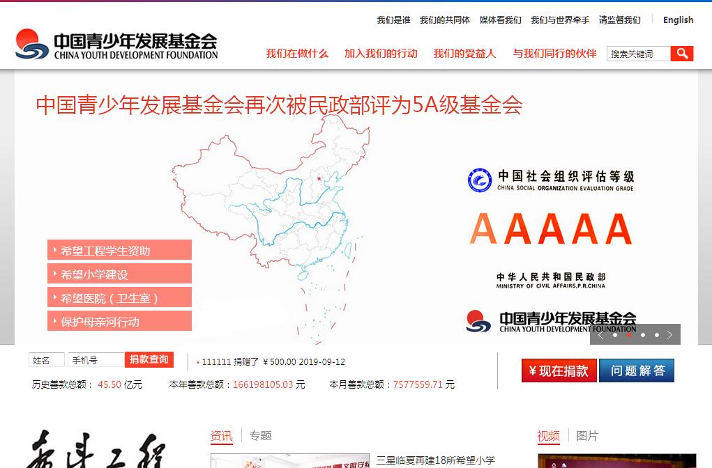 中国青少年发展基金会简称为"中国青基会",英文译名为"China Youth Development Foundation",缩写为"CYDF"。中国青基会是5A级基金会,1989年3月由共青团中央发起成立。中国青基会是全国性公募基金会,其面向公众募捐的地域是中国以及许可中国青基会募捐的国家和地区。中国青基会的使命是:通过资助服务、利益表达和社会倡导,帮助青少年提高能力,改善青少年成长环境。多年来,基于共同使命、共同价值观、共同的道德标准及共同行动,中国青基会与全国37家地方青基会形成全国青基会共同体。中国青基会于1989年10月发起实施希望工程,是我国社会参与最广泛、最富影响的民间公益事业。截至2017年,全国希望工程累计接受捐款140.4亿元,资助困难学生574.8万名,援建希望小学19,814所,希望厨房5,861个,援建希望工程图书室29,170套,培训教师106,558名。还资助建设希望工程体育教室、美术教室、音乐教室,开展远程支教、科学文体、夏令营等各种活动,积极进行教育扶贫,促进贫困地区基础教育全面发展。中国青基会曾获得过中共中央、国务院和中央军委授予的"全国抗震救灾英雄集体"荣誉称号、优秀民间组织奖、首届中国消除贫困奖及中华慈善奖等荣誉。同时,中国青基会是联合国新闻部联系单位,也是国际青年基金会伙伴网络成员。