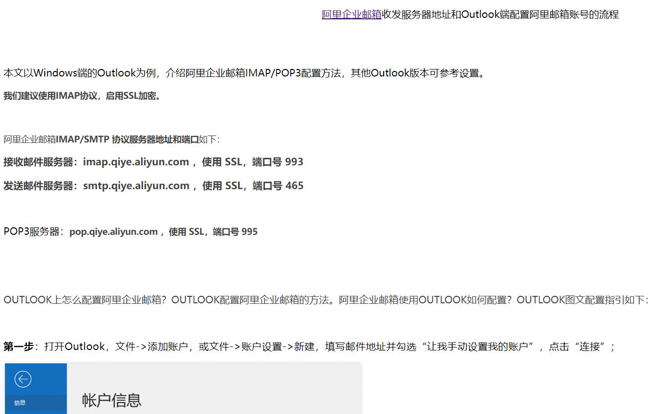 | 网站简介: 阿里邮箱OUTLOOK设置( exmail.biz/outlook )此页面本文以Windows端的Outlook为例,介绍阿里企业邮箱IMAP/POP3配置方法,其他Outlook版本可参考设置。OUTLOOK上怎么配置阿里企业邮箱?OUTLOOK配置阿里企业邮箱的方法。阿里企业邮箱使用OUTLOOK如何配置?以上问题在这个页面有图文教程。阿里企业邮箱( exmail.biz )是阿里云重要产品之一,专业提供的云计算技术和平台,基于庞大的服务器集群构建的企业邮箱平台。 桑桥网络( sangqiao.com )是专业的企业邮箱服务商,是阿里企业邮箱官方授权经销代理商。专业为你提供阿里企业邮箱+钉钉部署、设置、开通、注册、申请、购买、扩容、咨询、售后技术支持等服务。客户的满意,永远是我们的第一追求。有企业邮箱需要的朋友们,欢迎垂询,有优惠折扣等着你。 |