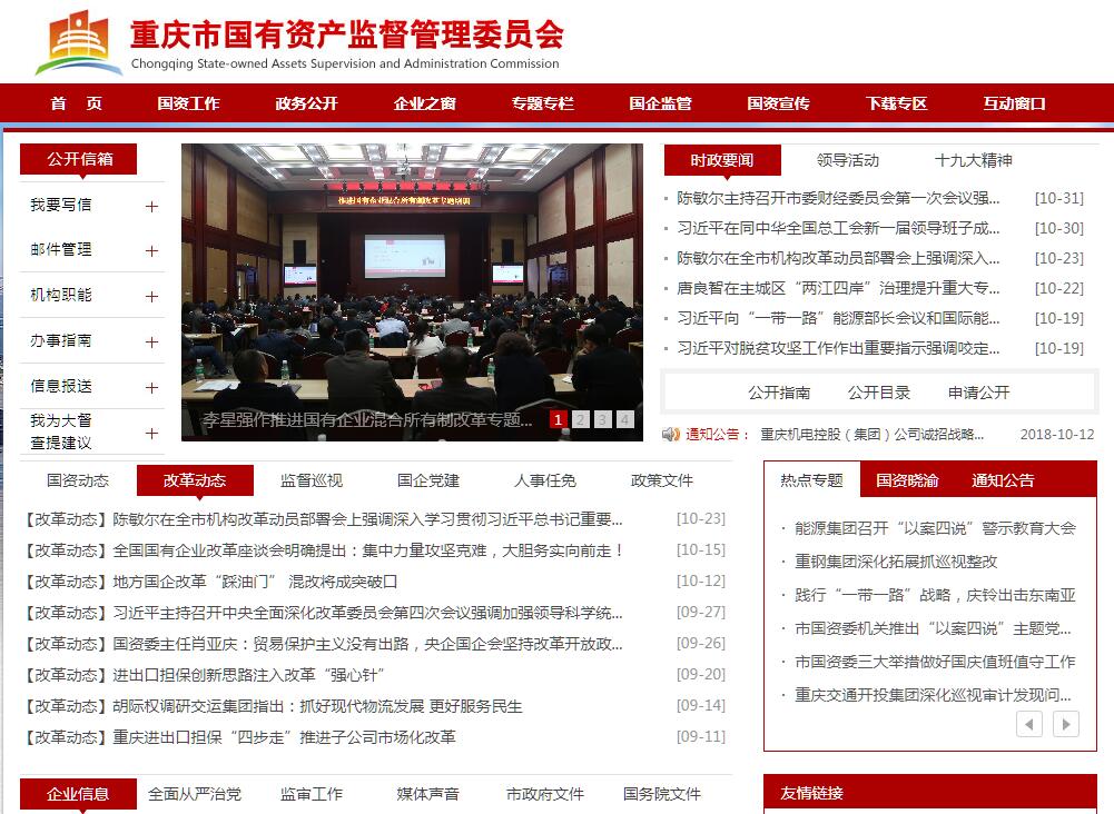 重庆市国有资产监督管理委员会(简称市国资委),为重庆市政府直属正局级特设机构。市政府授权市国资委代表国家履行出资人职责。市国资委的监管范围是市属企业的国有资产。其主要职责:(一)根据国务院和市政府授权,依照《中华人民共和国公司法》、《企业国有资产监督管理暂行条例》等法律和行政法规履行出资人职责,指导推进国有及国有控股企业改革和重组。对所监管企业国有资产的保值增值进行监督,加强国有资产的管理工作;推进国有及国有控股企业的现代企业制度建设,完善公司治理结构;推动国有经济结构和布局的战略性调整。(二)代表市政府向部分市属国有重点企业派出监事会。负责监事会的日常管理工作。(三)通过法定程序对市属国有重点企业负责人进行任免、考核并根据其经营业绩进行奖惩。建立符合社会主义市场经济体制和现代企业制度要求的选人、用人机制,完善经营者激励和约束制度。(四)通过统计、稽核对所监管国有资产的保值增值情况进行监管。建立和完善国有资产保值增值指标体系,制订考核标准;维护国有资产出资人的权益。(五)拟订国有资产管理的地方性法规、行政规章,制定有关制度,依法对区县(自治县、市)国有资产管理进行指导和监督。(六)承办国务院国资委和市委、市政府交办的其他事项。