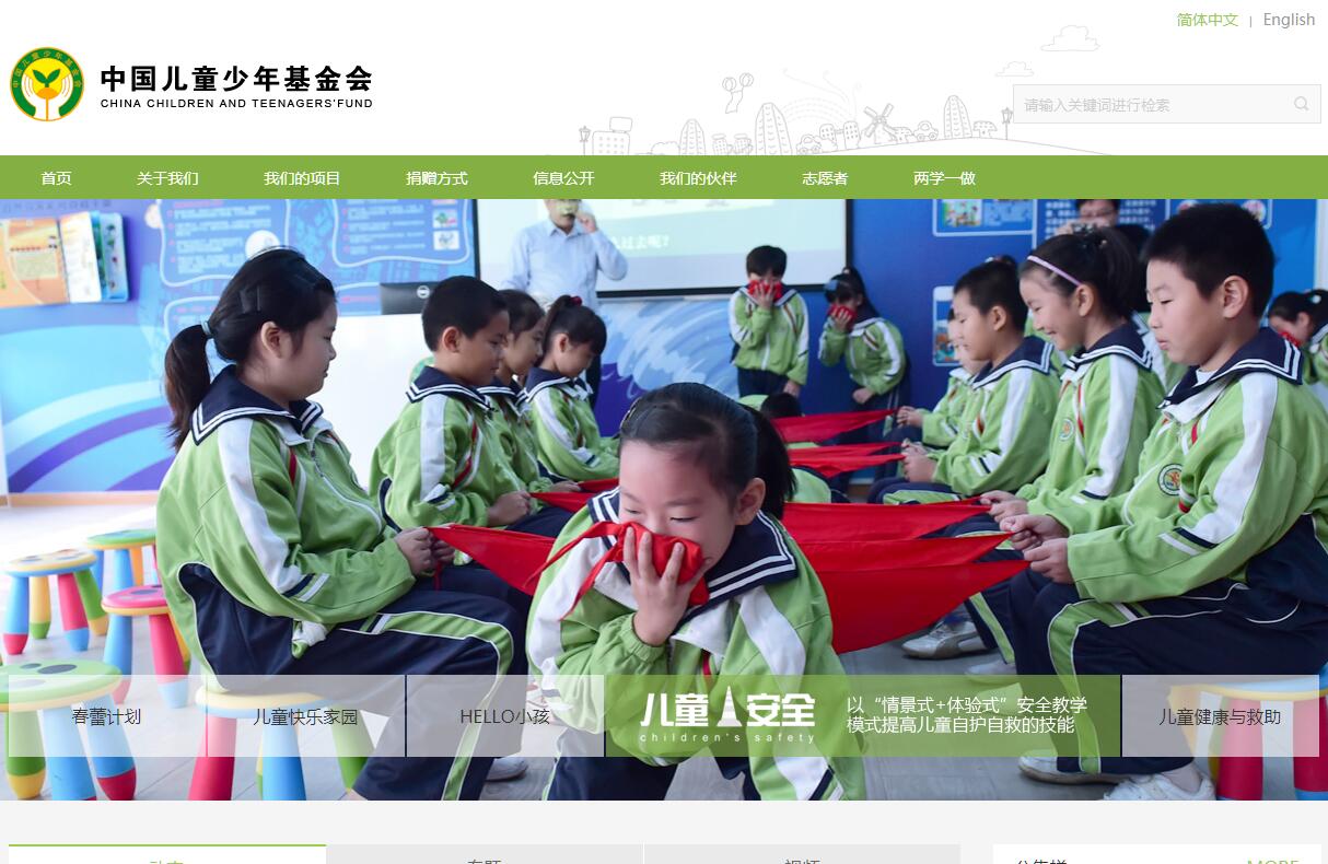 | 网站简介: 中国儿童少年基金会(简称“中国儿基会”),成立于1981年7月28日,是新中国成立后的第一家国家级公募基金会,隶属于全国妇联,在中国基金会序列中,被民政部评定为最高等级——5A级。康克清、陈慕华、顾秀莲、陈至立同志先后担任中国儿基会理事长(会长),现任理事长为全国妇联党组书记、副主席、书记处第一书记宋秀岩 [2] 。彭丽媛同志担任中国儿童少年基金会“春蕾计划促进女童教育特使”。 |
