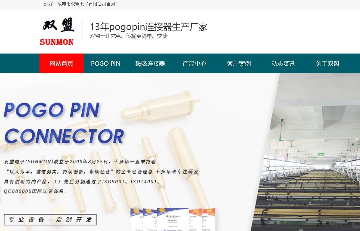 | 网站简介: pogopin,磁吸连接器,pogopin连接器,pogopin磁吸线,连接器厂家[双盟电子],系研发、生产、销售、服务于一体的制造型企业,为客户提供1V1定制,高品质的产品和服务。 |