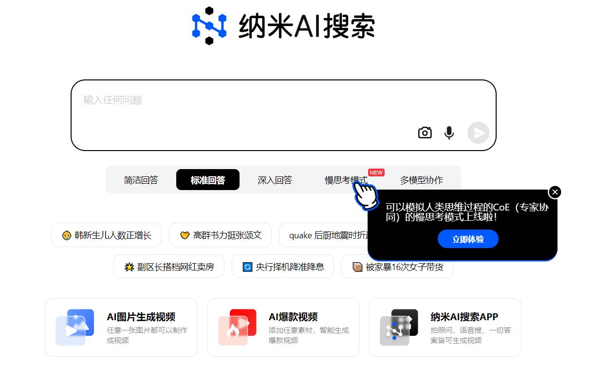 | 网站简介: 纳米AI搜索开创全新问答方式,没有套路,直接给答案,让搜索变得简单直观!拍照问、语音搜、听答案,让搜索随心所欲,智慧触手可得。 |