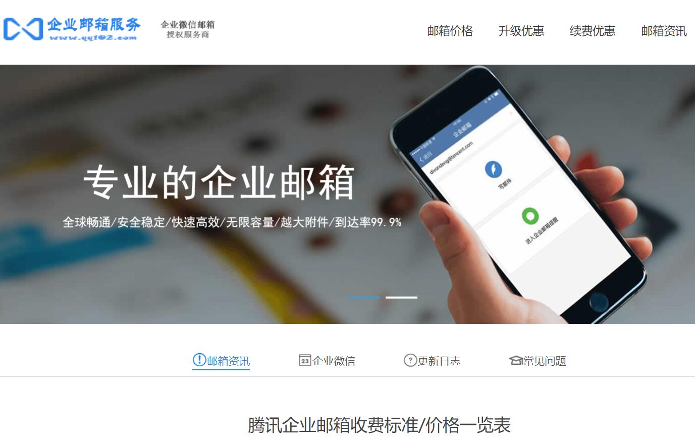 | 网站简介: 腾讯企业邮箱是QQ邮箱团队专为企业打造的企业办公用的邮箱,秉承QQ邮箱一贯的稳定、简洁和快速。腾讯企业邮箱价格、报价、费用、收费标准一年多少钱?进入本页面就可以了解到腾讯企业邮箱收费标准价格一览表。腾讯企业邮箱价格一览表所示价格为腾讯官网标准价格。企业邮箱服务商渠道不定期推出适用于全新购买和老客户续费的各类优惠促销活动,比如“买2年送1年、买3年送2年”的新购优惠促销,和“续费3年送3年、续费2年送2年”的续费优惠促销等。具体请以咨询客户回复为准。腾讯企业邮箱服务商( www.exmail.pro )桑桥网络的服务如下:1. 签订服务合同,提供发票;2. 售前以供客户咨询,售后承诺服务时间保证服务质量;3. 邮箱故障,迅速响应.;4. 联系腾讯官方提供接口工程师,作为我们的支持快速解决邮箱故障。目前,腾讯企业邮箱已合并进企业微信,作为企业微信的子模块存在,所以现在腾讯企业邮箱又叫企业微信邮箱,腾讯企业邮箱服务商又称为企业微信邮箱服务商( www.acnet.cc )。 |