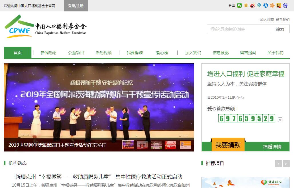 | 网站简介: 中国人口福利基金会是经民政部注册、接受国家卫生健康委员会业务指导、具有独立法人地位的全国公募非营利公益组织,是国家4A级基金会。1987年6月10日成立。多次荣获民政部“全国先进社会组织”称号。2016年,经民政部首批认定为慈善组织。 |