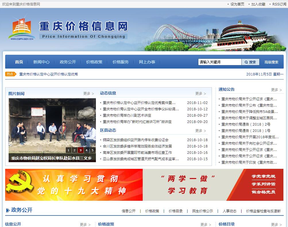重庆价格信息网(www.cqpn.gov.cn,以下简称“本网站”)是重庆市物价局门户网站,是重庆市物价局政务公开的平台和对外形象展示的窗口。本网站由重庆市物价局主办,重庆市物价局办公室和重庆市价格协会负责网站运营管理。重庆市物价局,是重庆市市政府职能机构,主管全市物价工作。其主要职责:(一)贯彻执行价格法律、法规、规章和方针政策,负责组织实施国务院价格主管部门制定的商品价格、服务价格和行政事业性收费规定。(二)拟定全市的价格改革计划和中长期规划及年度工作计划;起草本市价格、收费地方性法规、规章;负责受理和组织、指导全市价格行政复议和行政诉讼。(三)负责全市价格总水平的调控和综合平衡;研究提出全市价格总水平调控目标及价格调控措施;负责价格调节基金的设立审查,参与政府价格调控措施的研究和实施工作,参与建立重要商品储备制度并拟订相关的管理办法。(四)负责制定全市重要商品和服务价格的定价目录和管理办法。负责管理人民生活必需品、自然垄断经营商品、重要的公用事业、重要的公益性服务等商品价格和服务价格,研究制定实行政府定价、政府指导价的商品价格和服务价格的管理办法、作价原则和作价方法;协调、管理、引导已放开的商品价格和服务价格。(五)负责管理全市行政事业性收费,建立健全并组织实施收费许可证制度、收费许可证收费年度审验制度和收费许可证收费统计报告制度。(六)负责全市市场价格监测体系和价格信息网络建设工作,加强对重要商品价格和服务价格监测,跟踪反馈国家重要经济政策在价格领域的反映,做好价格预测预警;研究国际国内市场价格变动对本市价格的影响并提出政策建议;发布价格信息,引导经营者价格行为。(七)负责组织、指导、协调全市价格、收费监督检查工作,依法查处价格、收费违法行为;负责本市反价格垄断行政执法工作;负责组织实施商品明码标价和收费公示制度,推进价格诚信建设;负责建立和完善价格监督网络,受理价格举报投诉,协调解决价格、收费矛盾纠纷;组织、指导社会监督、舆论监督。(八)指导、协调和监督市政府其他部门和区县(自治县)政府的价格和收费工作,处理价格争议,指导行业组织的价格工作。(九)负责市管政府定价、政府指导价的商品价格和服务价格制度和管理过程中的定价成本的监审及调查工作;负责全市农产品生产成本的调查及组织工作;负责全市重要的农副产品、工业品、公用事业、房地产等的价格、成本和流通费用的调查工作。(十)负责对价格认证机构的监督管理;负责涉案物品的价格认证工作;指导价格评估、鉴证工作;指导价格咨询、服务等价格事务工作。(十一)承办市政府交办的其他事项。