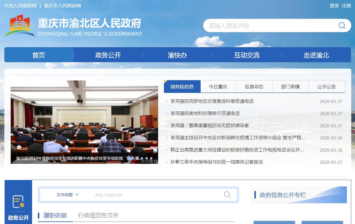 渝北位于重庆主城北大门,全区幅员面积1452平方公里,辖11个镇19个街道(含两江新区直管区8个街道),城市建成区面积170平方公里,常住人口163万,城镇化率80%。先后获得全国文明城区、全国环境保护模范城区、国家卫生区、中国优秀旅游城区等30多项荣誉。历史文化悠久。渝北区在距今五六千年前的氏族社会,即有土著居民在境内居住,县境在周代属巴国,秦汉至西晋属巴郡江州县。东晋时属枳县,南北朝时并入巴县。清乾隆十九年(1754年)设置江北厅,属重庆府。民国二年(1913年)改江北厅为江北县,1994年撤江北县建渝北区。古往今来,出现了北宋进士冯时行、明代六朝重臣蹇义、明朝翰林院学士江朝宗、民国著名富商杨粲三、红岩英烈王朴,以及参与发起修建四川第一条民营铁路的留美硕士唐建章,武术大师赵子虬等著名人士。境内有龙藏宫等名胜遗迹,以及黄炎培创建的中华职校遗址和于学忠将军故居等。区位条件优越。渝北是重庆内陆开放高地建设的重要阵地,国家首批临空经济示范区,重庆自贸试验区、中新互联互通项目重要承载地。渝北是两江新区开发建设的主战场,有保税港区空港功能区、悦来国际博览中心、龙兴工业园、仙桃国际大数据谷、创新经济走廊等市、区开发开放平台,发展潜力巨大,正成为中西部乃至内陆开放的“桥头堡”、城乡统筹的示范区。交通优势突出。渝北境内拥有全国排名前十的江北国际机场和全国铁路枢纽之一重庆火车北站,机场旅客吞吐量突破4000万人次,紧邻长江上游最大的外贸集装箱枢纽港—寸滩港,功能要件齐全。渝怀铁路、渝利铁路贯穿区境,渝长、渝邻、渝合、渝广等8条高速公路在区境内交汇,轨道10号线、3号线、6号线等7条轨道线路开通运营,形成了水陆空立体交通网络,是重庆综合交通枢纽和国际物流分拨中心。发展势头良好。渝北区抓住开放机遇,推进经济转型升级、城乡统筹发展、民生民利改善,经济结构加快转型升级,群众获得感幸福感安全感持续提升。战略性新兴产业蓬勃发展,是全市最大的汽车制造业基地、重要的智能终端生产基地、进出口基地和创新金融集聚地,也是有名商贸大区、美食名区、会展新区、文化强区,地区生产总值、规模以上工业总产值、固定资产投资等多项经济指标保持全市第一,综合科技竞争力全市第一,“双创”指数保持全市第一。生态环境宜居。渝北是重庆主城的肺叶,有铜锣山、华蓥山、明月山三大天然森林屏障,森林覆盖率达39.2%。近年来,通过实施国有空地覆绿、黑臭水体整治等城市品质提升行动,全方位提升旧城、高标准建设新城,建成区绿化率达到45%,重庆中央公园、碧津公园、龙头寺公园等近100个大小公园星罗棋布,双龙湖、盘溪河等六湖七河点缀其间。境内有国家AAAA级风景区统景温泉、两江影视城和中国历史文化名镇——龙兴古镇等丰富的旅游资源。作为全市乡村振兴综合试验示范区,渝北还拥有玉峰山“森林氧吧”、木耳斗碗寨等“三环十景”旅游景点,礼朝屋基、聂家院子、胜天大土湾等农村人居环境整治示范点建筑风格得体、生态环境宜人、乡愁韵味浓郁。渝北空气质量优良天数常年保持在90%以上,是重庆的宜居名区。当前,在市委、市政府的坚强领导下,渝北正以习近平新时代中国特色社会主义思想为指导,紧扣习近平总书记对重庆提出的“两点”定位、“两地”“两高”目标、发挥“三个作用”和营造良好政治生态的重要指示要求,继续打好“三大攻坚战”、大力实施“十项行动计划”,围绕“创新生态圈、智能制造基地、国际航空港”三大功能定位,锐意进取、埋头苦干,为加快建设国家临空经济示范区、决胜全面建成小康社会、开启现代化建设新征程而努力奋斗。