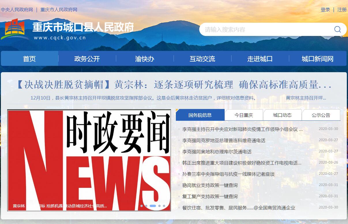 | 网站简介: 城口县隶属重庆市,位于长江上游地区、重庆市东北部,地处渝川陕三省(市)交界处。南与重庆巫溪县、开州区、四川宣汉县毗邻,东北与陕西镇坪县、平利县、岚皋县、紫阳县接壤,西与四川万源市相连。至2017年底,城口县下辖2街道10镇,幅员面积3289.1平方公里,常住人口18.43万人。2017年,城口县实现地区生产总值48.79亿元,同比增长5.0%。其中,第一产业增加值8.75亿元,第二产业增加值23.32亿元,第三产业增加值16.71亿元。城口县获得过中国绿色生态中药材示范县,先后获“中国生态气候明珠”、“大中华区最佳绿色生态旅游名县”、“中国天然富硒农产品之乡”、“中国绿色生态板栗之乡”、“中华蜜蜂之乡”、“全国森林旅游示范县”等荣誉称号。2019年3月,位列第一批革命文物保护利用片区分县名单。 |