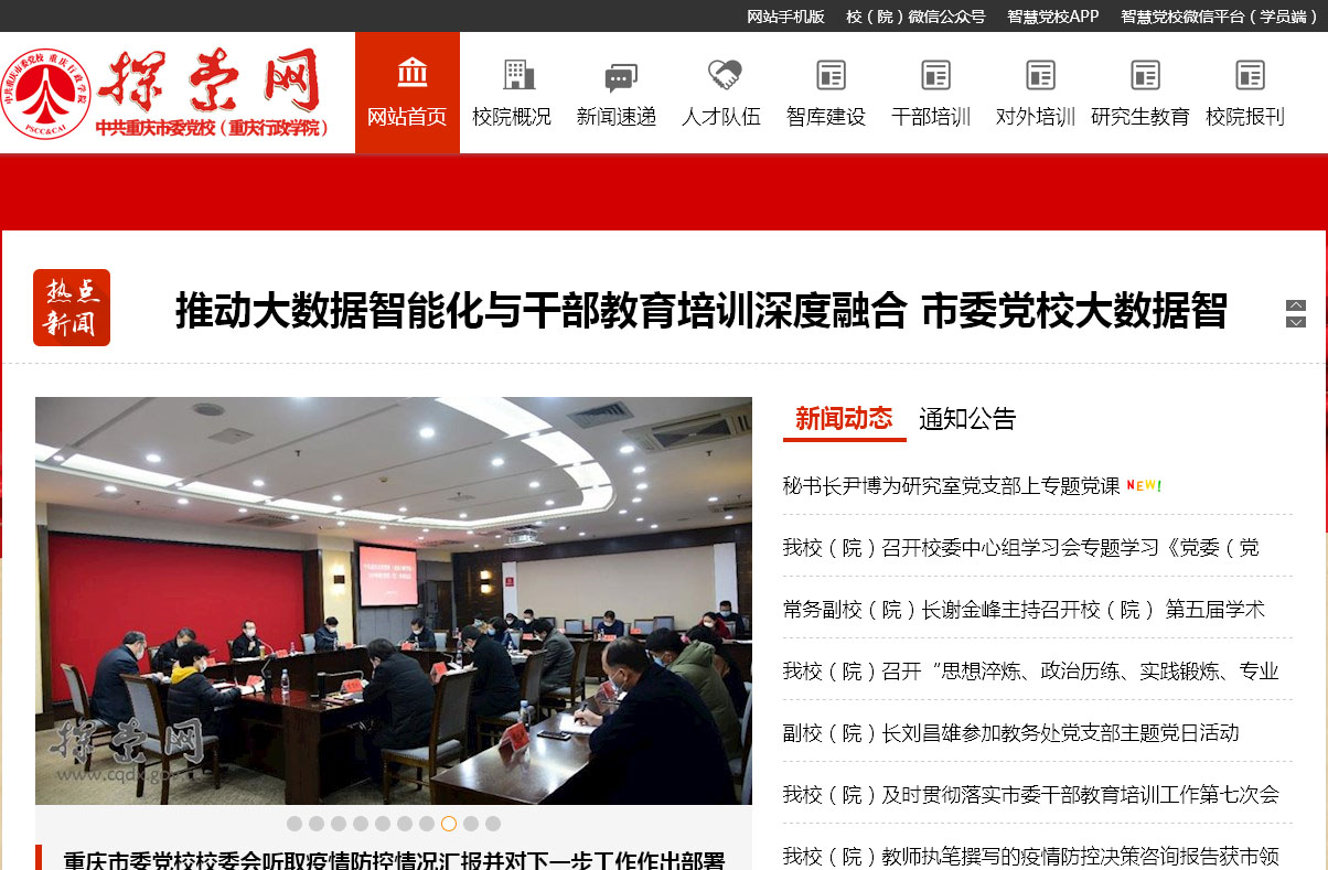 探索网由中共重庆市委党校(重庆行政学院)主办。中共重庆市委党校、重庆行政学院是在中共重庆市委、重庆市人民政府直接领导下培养党员领导干部、理论干部和国家公务员的学校,是培训轮训党员领导干部的主渠道,是开展理论研究和决策咨询的机构,是市委、市政府的重要部门。学校于1997年在原中共四川省委第二党校、原重庆市委党校、原重庆行政学院的基础上组建而成,1999年市委讲师团并入。校园位于重庆市九龙坡区,占地面积360亩,分东、西两院教学办公,是重庆市首批“十佳园林式单位”。建有现代化的综合教学楼、学苑大厦、应急管理培训基地及学员活动中心等主体建筑,可同时容纳1200名学员培训。重庆市委副书记任学锋兼任重庆市委党校校长,市委常委、常务副市长吴存荣兼任重庆行政学院院长。学校下设32个部门,现有在职教职工381人,其中正高级教研人员31人,副高级教研人员53人;享受国务院政府特殊津贴人员3人,市级学术技术带头人3人;具有硕士研究生以上学历215人,其中博士研究生学历64人。学校建有中央党校教学基地、国家行政学院教学科研基地和重庆市应急管理培训基地。目前,学校有3个国家硕士学位授权一级学科点(政治学、马克思主义理论、理论经济学);3个独立的国家硕士学位授权二级学科点(马克思主义哲学、宪法与行政法学、行政管理);3个重庆市高等学校“十三五”市级重点学科(政治学、理论经济学、公共管理);1个专业型硕士学位授权点(MPA)。设有重庆市中国化马克思主义研究中心(重庆市重点人文社科基地)等3个研究中心,办有《探索》《重庆行政》《重庆社科文汇》3个刊物和《重庆党校报》,其中《探索》为全国中文核心期刊、CSSCI来源期刊、中国人文社会科学核心期刊、RCCSEZ中国权威学术期刊,被人大“复印报刊资料”转载量位居全国党校前列。学校数字资源建设走在全国党校前列,荣获中央党校远程教学资源片优秀组织奖和数字资源建设优秀组织奖。学校坚持抓好主业主课,不断深化教学改革,逐步形成了以干部培训为主体,以组织调训和委托培训为两翼的干部培训新格局。探索推进理论教育、传统教育、典型教育、实岗锻炼、党性分析“五大模块”的党性教育系统化,构建了三大基础板块(理论武装、党性修养、能力提升)和三类特色论坛(重庆学习论坛、专题报告会、学员自主讲坛)的“3+3”教学内容体系。广泛运用研究式教学、体验式教学、“2+x”和行动学习法等教学方式。十八大以来,举办经组织部调训的各类班次274个,培训干部24130人次。举办各类委托培训班次709期,培训了包括来自北京、上海、广东、四川等省市干部48919人次。学校坚持推进教学科研咨询“三位一体”,不断加强思想库建设。十八大以来,在省级以上公开刊物发表文章893篇,出版学术专著58部,获省部级以上课题187项,其中国家级课题41项(立项总数名列西部省市党校第一)。服务市委、市政府的决策咨询专刊《领导视窗》,报送535期,获市领导批示302期509人次。资政成果曾获李克强、张德江、王岐山、汪洋、孟建柱等中央领导的重要批示。学校先后获得“全民国防教育先进单位”“全国模范职工之家”“重庆市科学技术奖获奖单位”等殊荣。连续两届同时获得中央党校教学管理奖、精品课奖和首届行政学院系统精品课。在国家行政学院组织的贯彻落实《行政学院工作条例》督查评估中荣获“优秀”等次。党的十八大以来,学校连续6年在全市年度目标考核中,被评为优秀等次,校委班子连续5年被评为“先进领导集体”。