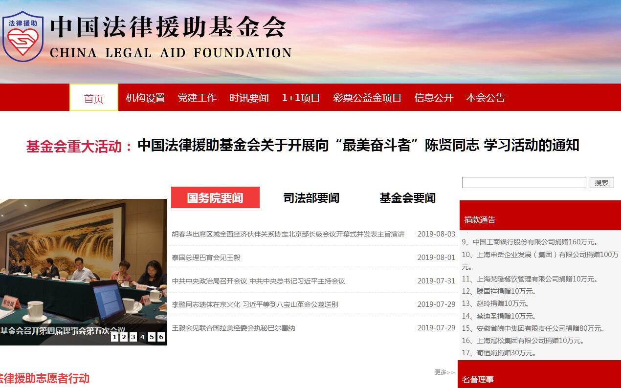 中国法律援助基金会是经国务院批准,于1997年在民政部依法登记成立的公募基金会,是目前我国唯一一家致力于发展法律援助事业的全国性公募基金会。中国法律援助基金会经历了第一、第二届、第三届理事会,2016年6月成立了第四届理事会。中国法律援助基金会的宗旨是保障全体公民享受平等的司法保护,维护法律赋予公民的基本权利。中国法律援助基金会的主要任务是募集法律援助资金,为实施法律援助提供物质支持,促进司法公正,维护社会公平与正义。近年来,在司法部和中国法律援助基金会理事会的领导下,在慈善企业、爱心人士的关心和支持下,中国法律援助基金会根据不同人群和地区的需要,先后设立了22个专项基金,分别是中国优秀学子法律援助专项基金、“592”法律援助专项基金、农民工法律援助专项基金、中国民间对日索赔法律援助专项基金、残疾人法律援助专项基金、妇女家庭权益保障专项基金、老年人法律援助专项基金、未成年人法律援助专项基金、生态环保法律援助专项基金、5.12孤残法律援助专项基金、灾区县级法律援助重建基金、“1+1”中国法律援助志愿者行动专项基金、中央专项彩票公益金法律援助项目、法治阳光基金、维护民营企业合法权益专项基金、立德树人法律援助专项基金、复员转业军人法律援助专项基金、互联网法律援助专项基金、法治文化公益基金、矿山能源行业法律援助专项基金、寰宇法律援助专项基金、医药卫生行业法律援助专项基金。在这些来自社会的专项基金支持下,在尊重捐赠人意愿的前提下,中国法律援助基金会以科学的管理、诚实的信誉、执着追求公平与正义的精神,严格遵守《慈善法》、《基金会管理条例》、《公益事业捐赠法》等有关法律、法规的规定,按照“费用支出最低化、服务数量最大化、服务质量最优化”原则,成功组织实施了一系列具有广泛社会影响的法律援助项目,资助办理了大量法律援助案件,有效维护了弱势群体的合法权益,受到社会各界广泛赞誉。十多年来,中国法律援助基金会取得了长足发展和进步,先后被民政部评为“4A级社会组织”和“全国先进社会组织”,获得“中国十大法制人物”和“中华慈善奖”等荣誉称号。