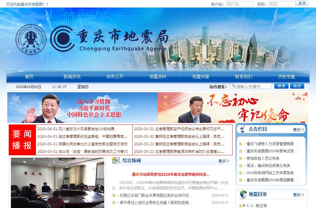 1997年6月重庆市恢复直辖以后,为加强全市的防震减灾工作,重庆市人民政府与中国地震局签订协议决定成立重庆市地震局,同时向中编办汇报了设置重庆市地震局有关问题,1999年5月,中编办批准同意成立“重庆市地震局”,1999年6月正式挂牌成立,2001年2月组建重庆市地震局党组班子。根据《中央机构编制委员会印发的〈省、自治区、直辖市地震机构改革方案〉的通知》(中编发〔2001〕4号)有关规定,2002年6月中国地震局印发了《重庆市地震局职能配置、机构设置和人员编制方案》(中震发人〔2002〕126 号),明确重庆市地震局为正厅局级机构,实行中国地震局和重庆市人民政府双重领导的管理体制。重庆市地震局主要职责有:根据有关法律、法规、规章规定,监督检查重庆市防震减灾工作,负责拟定重庆市防震减灾工作方针政策,组织起草并组织实施有关地方性法规、规章,制定规范性文件;组织编制重庆市防震减灾规划,编制重庆市防震减灾工作年度计划并组织实施;负责建立地震监测预报工作体系,规划、建设、管理、保护重庆市地震台网(站)及信息系统,制定、实施重庆市地震监测预报方案,强化重庆市地震年度值得注意地区和重点地区震情跟踪,对区县(自治县)地震监测台网(站)和群测群防工作实行行业管理;会同有关部门建立震灾预防工作体系,管理重庆市建设工程抗震设防要求、地震安全性评价、地震灾害预测;承担重庆市人民政府抗震救灾指挥机构的办事机构职能,负责震情和灾情速报,组织地震灾害调查和损失评估,参与制定地震灾区重建规划;会同有关部门建立地震紧急救援工作体系,制定重庆市破坏性地震应急预案并检查落实,组建、培训市地震紧急救援队伍,开展地震应急、救援技术和装备的研究与开发,协助建立地震年度值得注意地区和重点地区的地震应急救援物资储备系统;组织开展水库地震的监测和研究工作,会同有关部门防范地震次生灾害;组织开展防震减灾知识宣传教育工作;承担中国地震局和重庆市委、市政府交办的其他事项。