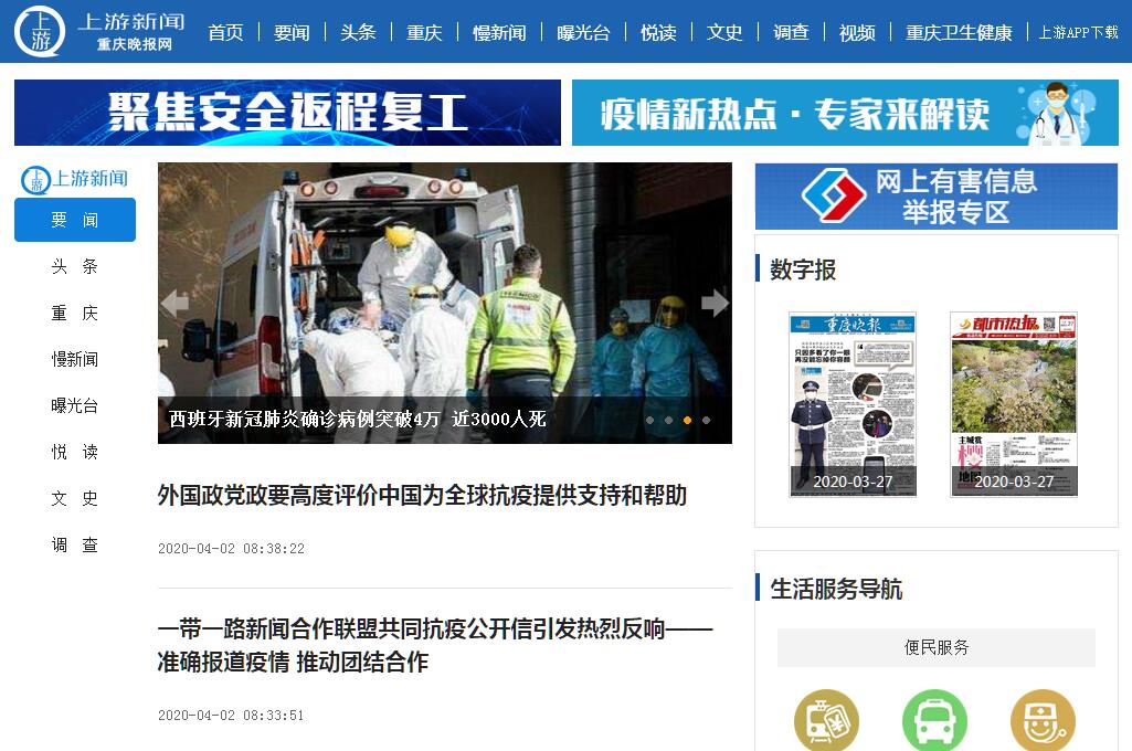 | 网站简介: 上游新闻-重庆晚报网是重庆最具影响力媒体,重庆晚报官方网站,全方位全时段滚动播报重庆新闻及国内国际重大事件。 |